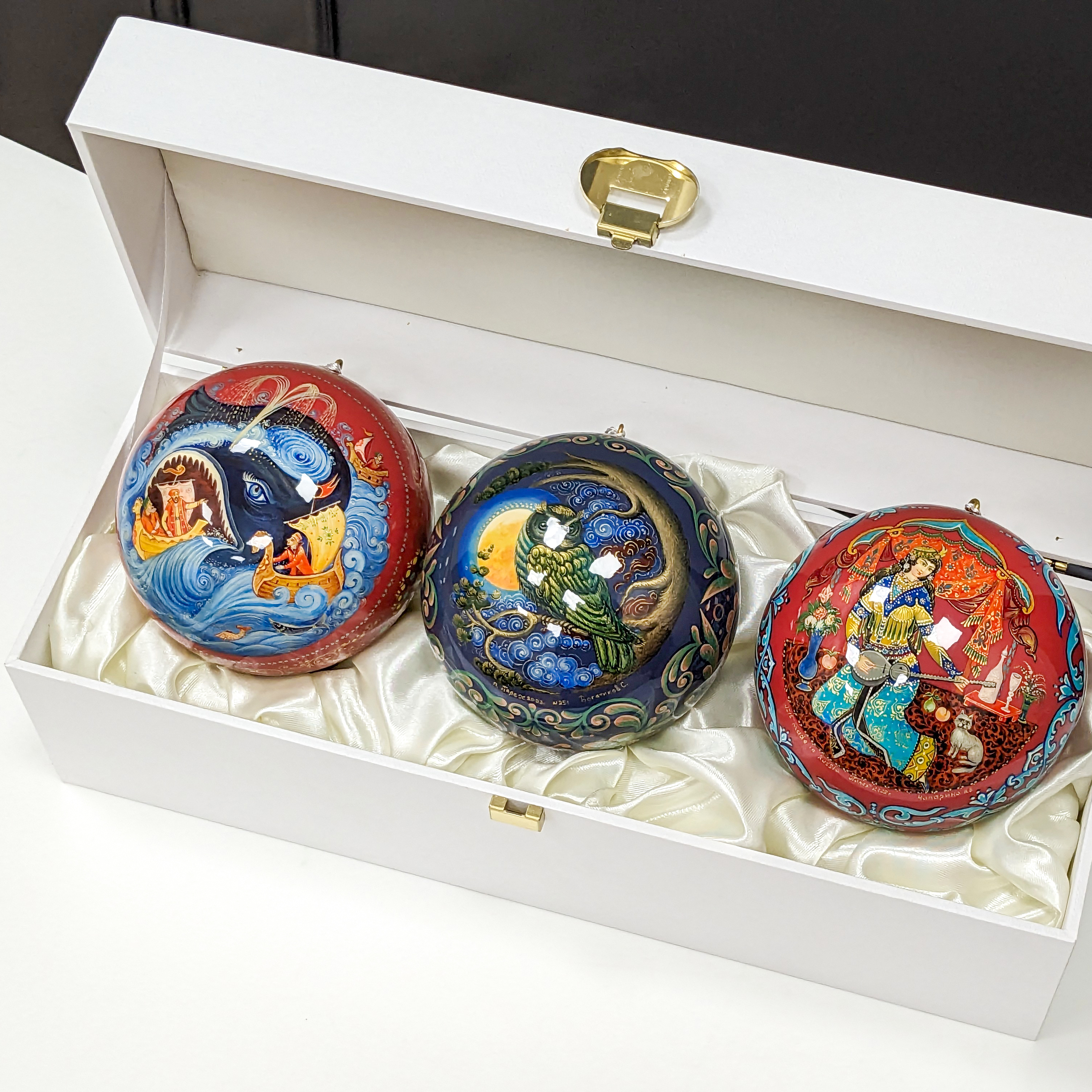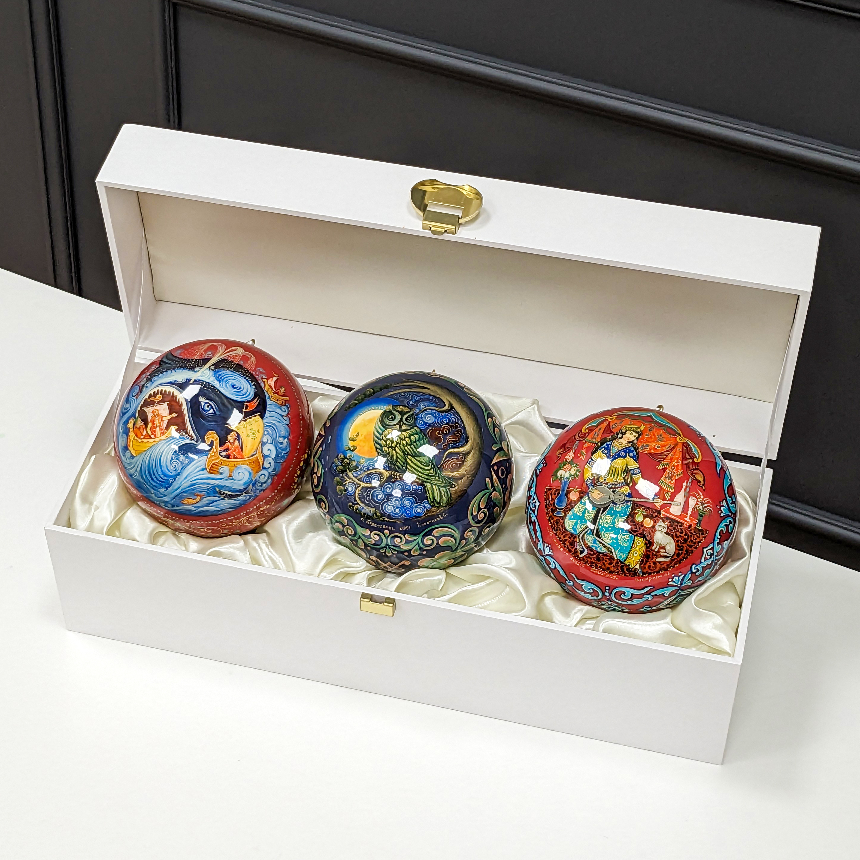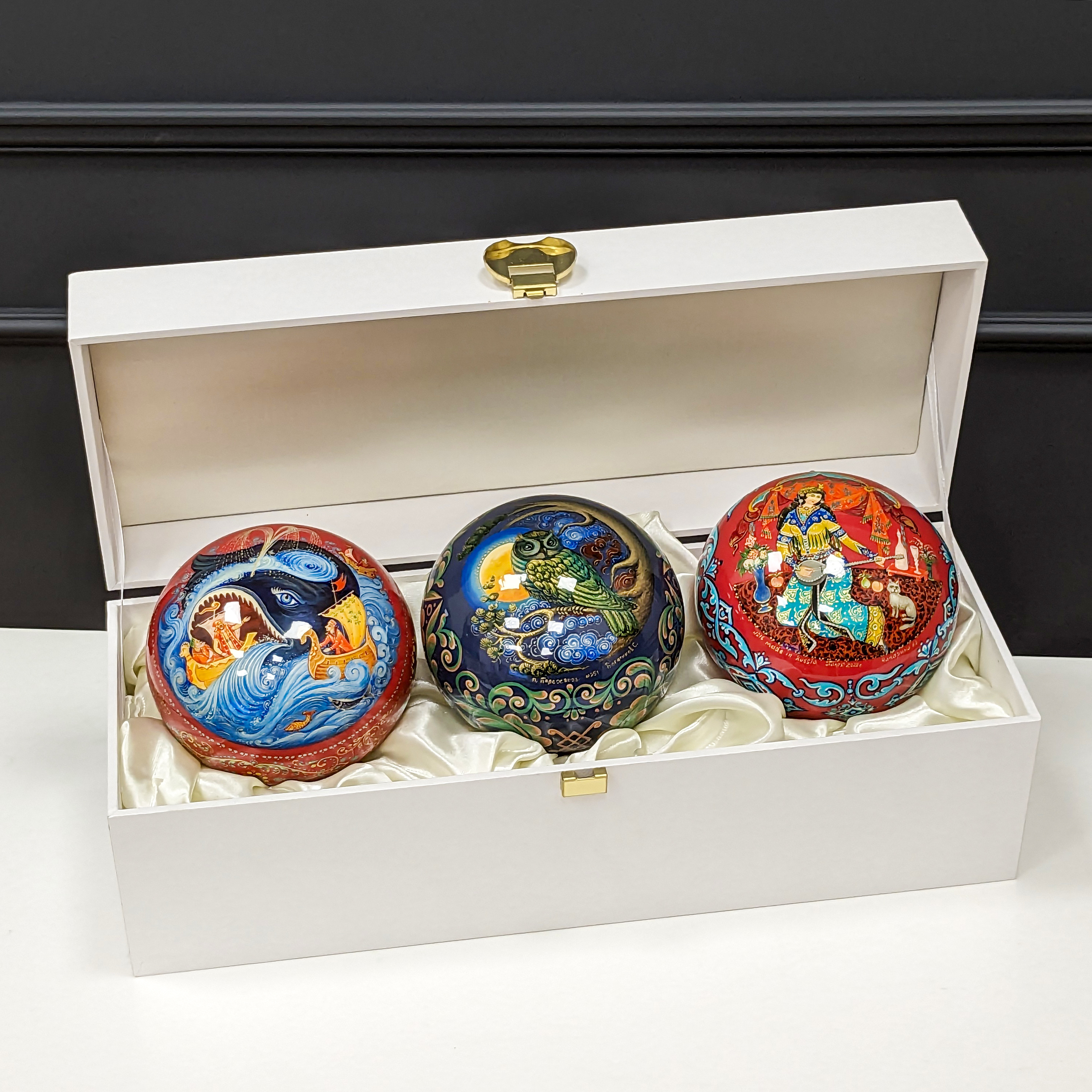 Набор деревянных ёлочных шаров "Палехские сказки" в подарочной коробке
