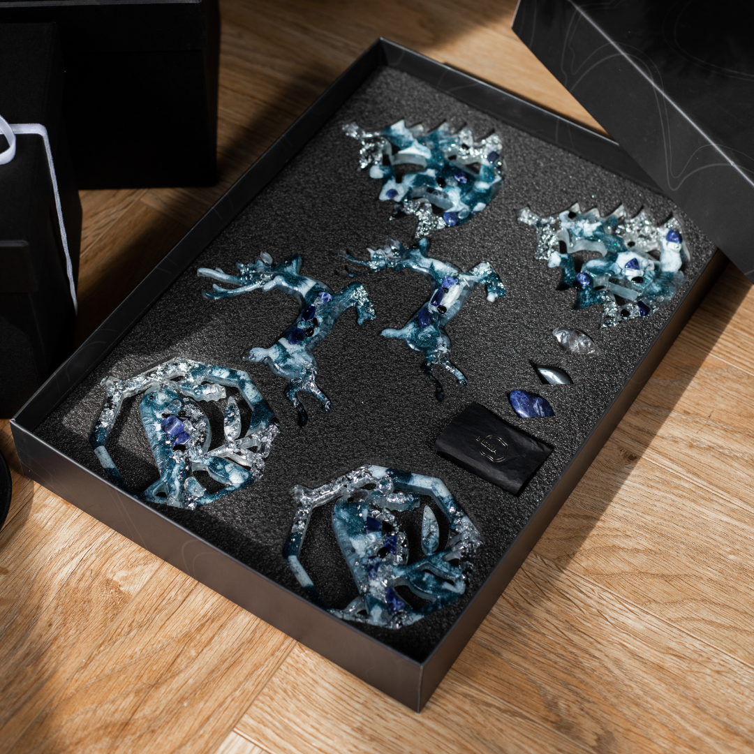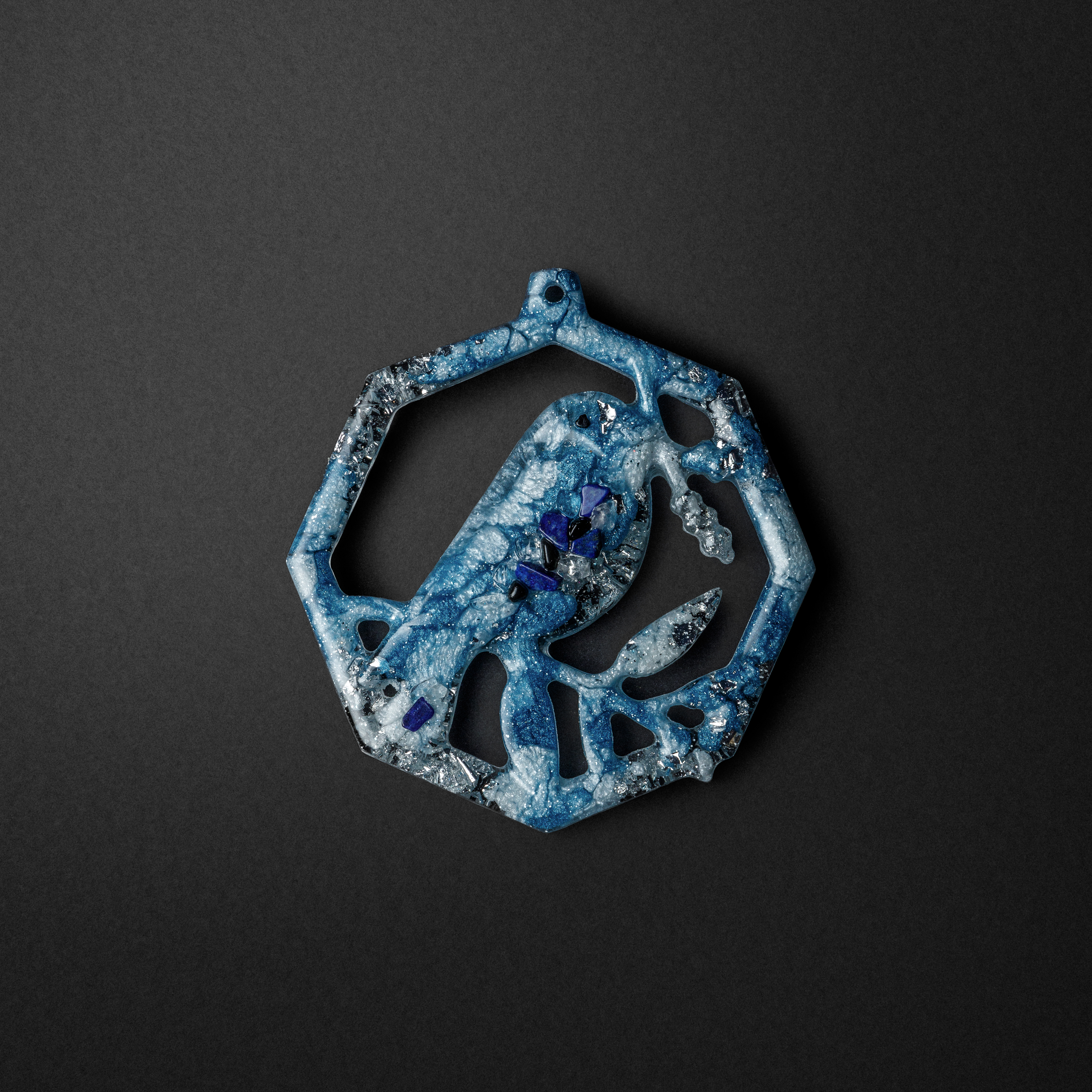 Материалы: сапфир, горный хрусталь, содалит, обсидиан.