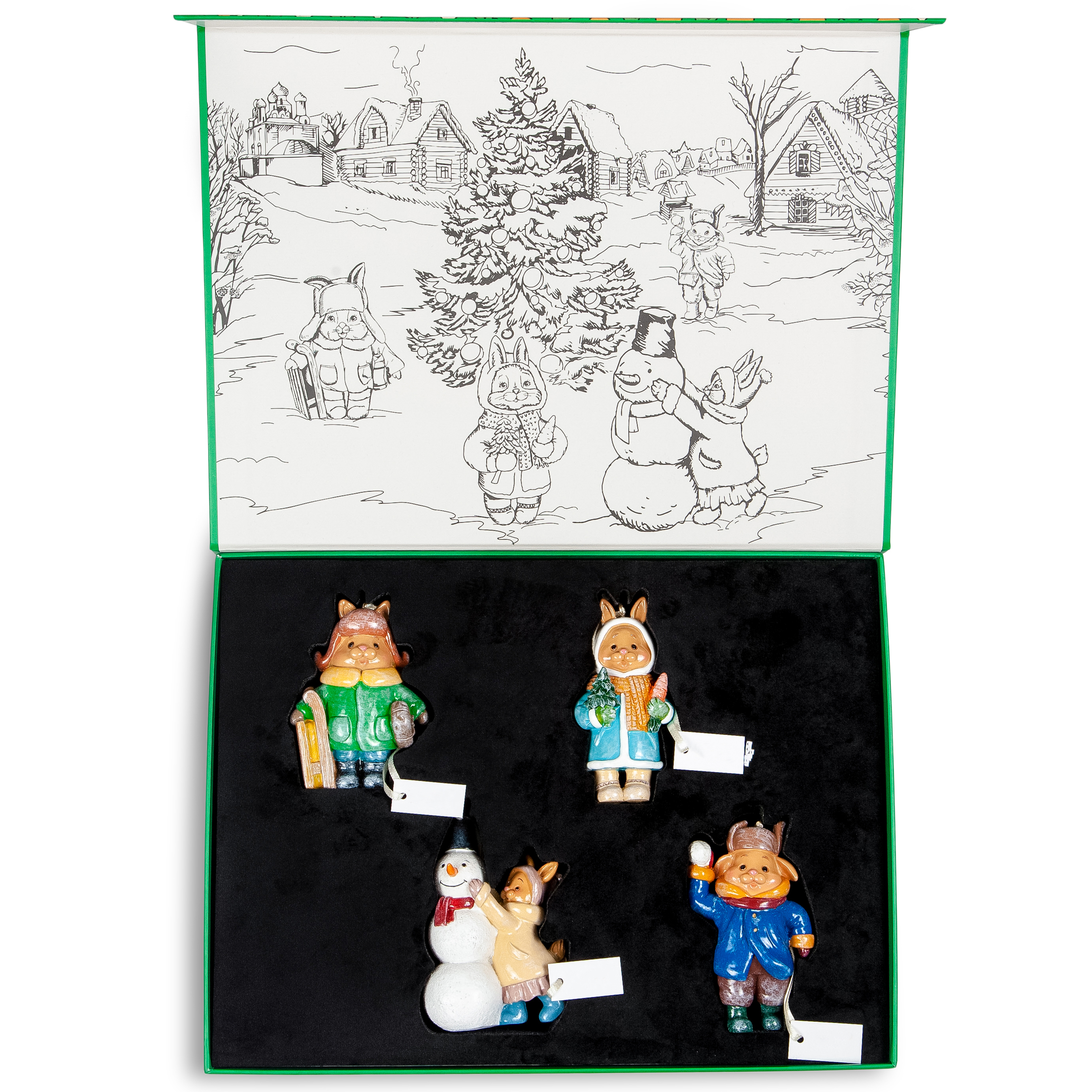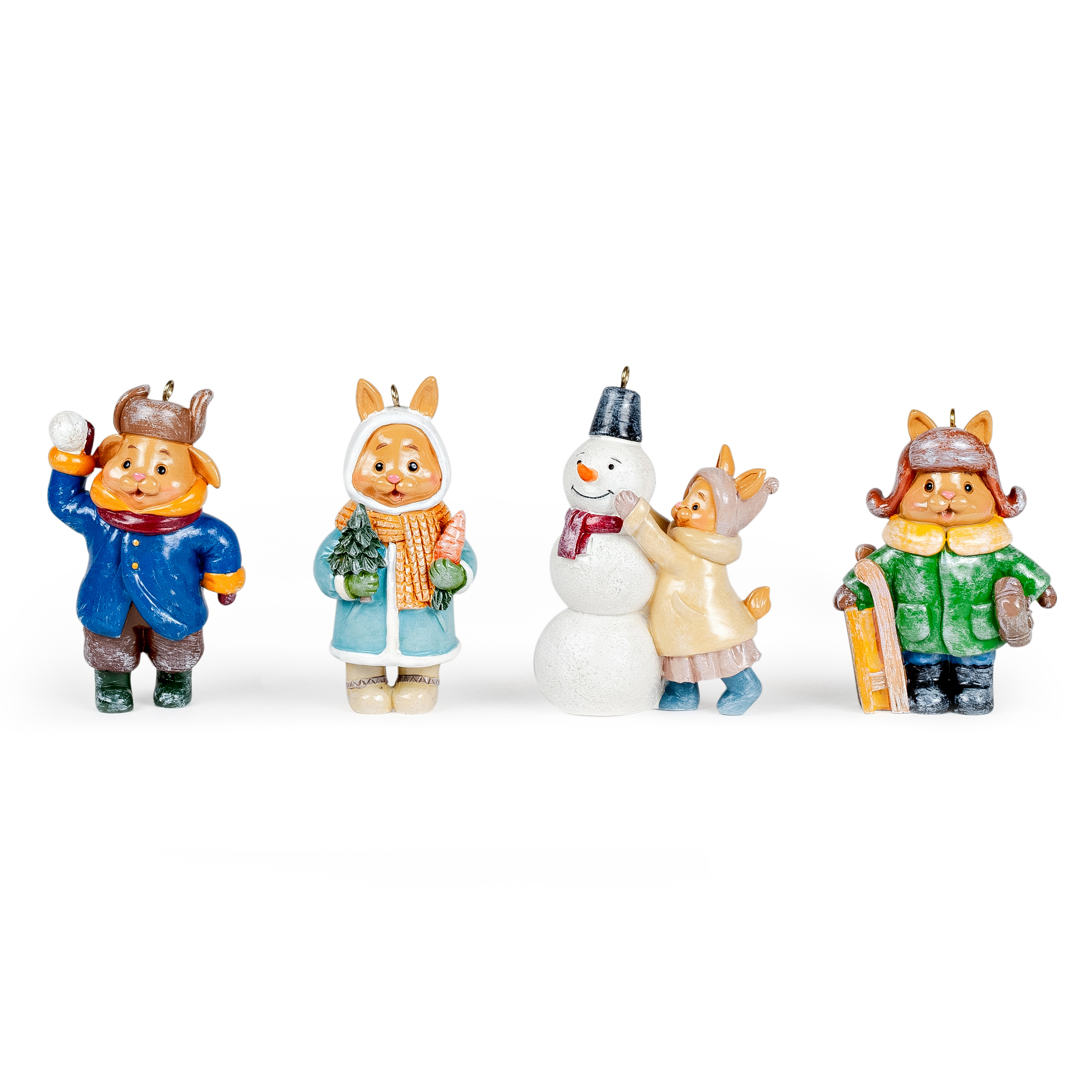 Набор елочных игрушек "Кроличья зима" в подарочной музыкальной коробке, 4 шт