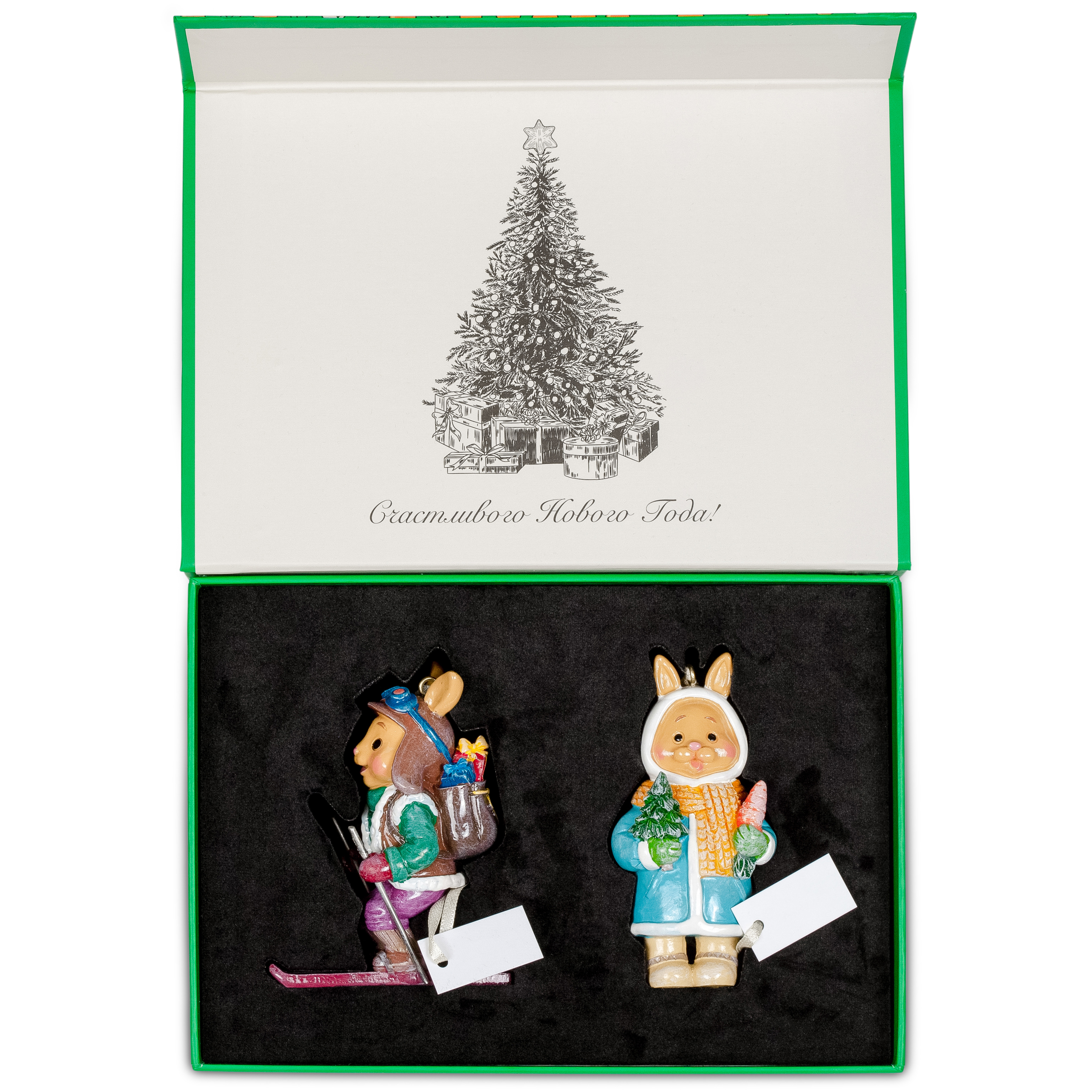 Набор елочных игрушек "Кролики. Твикс 1" в подарочной коробке, 2 шт