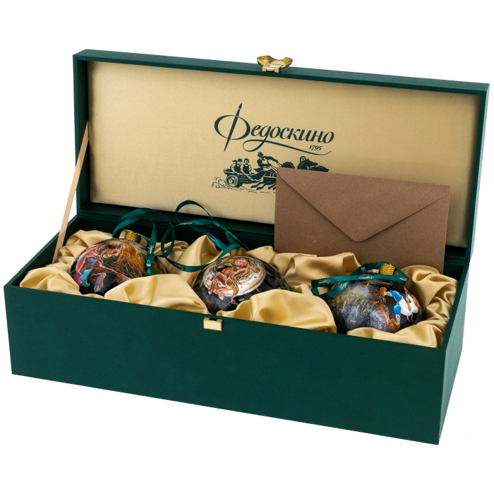 Набор елочный шаров "Конёк-горбунок" 3 шт, Федоскино