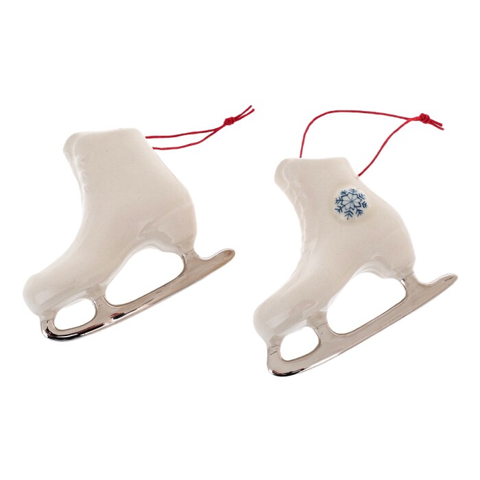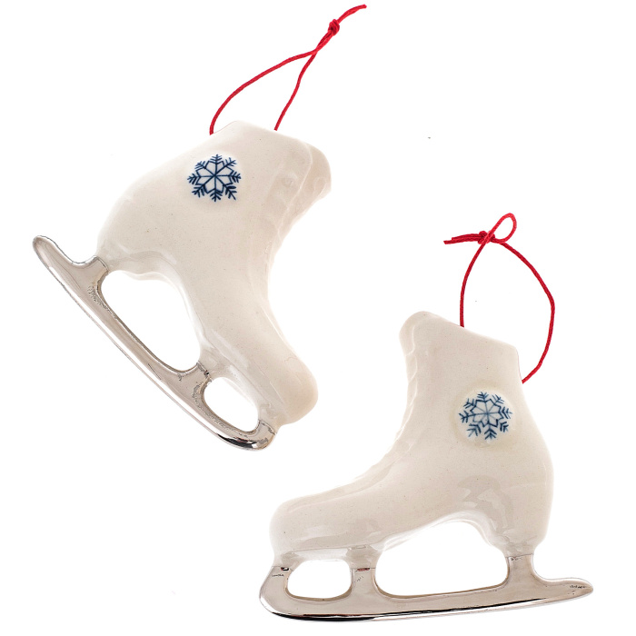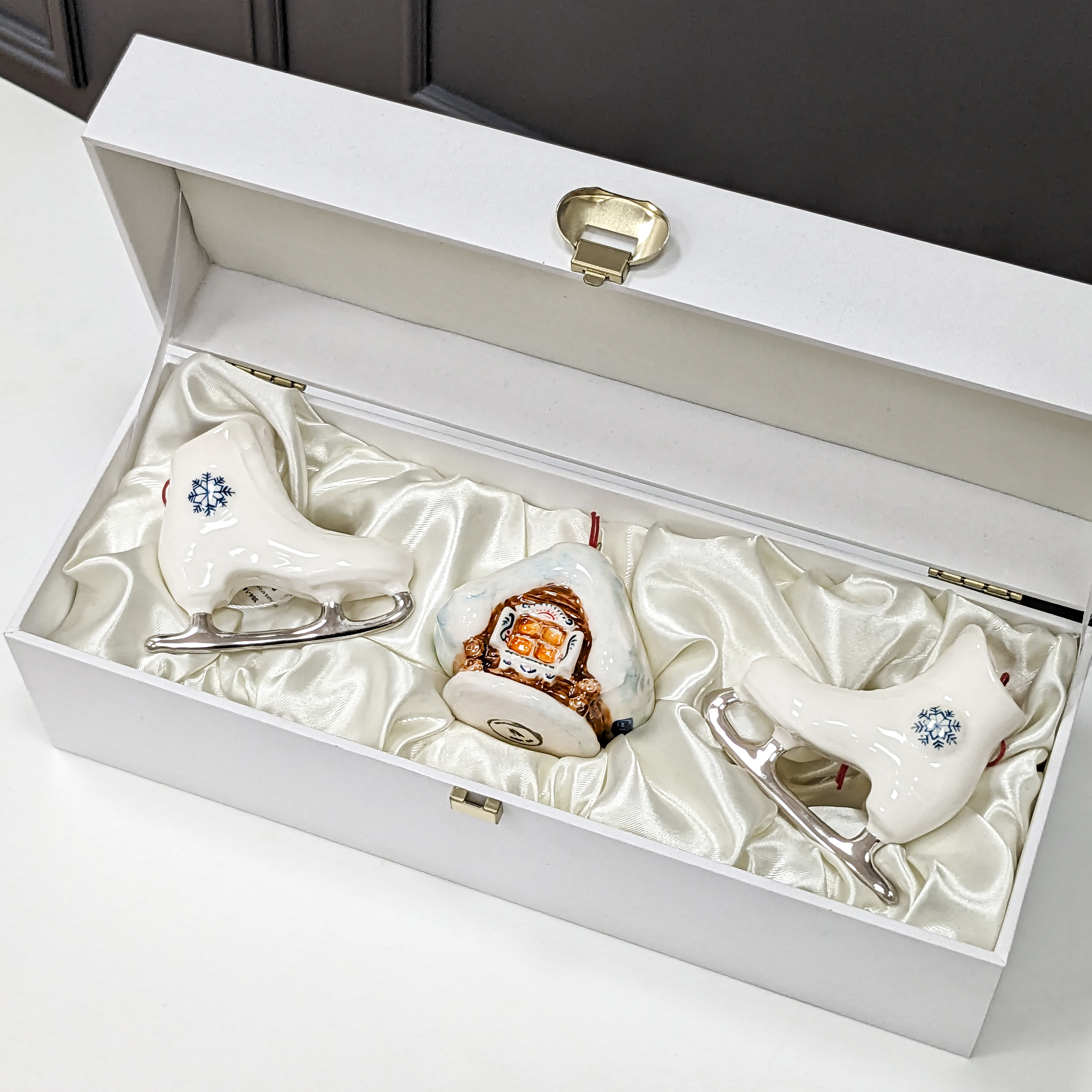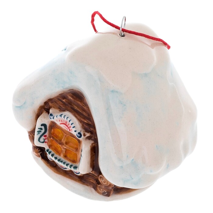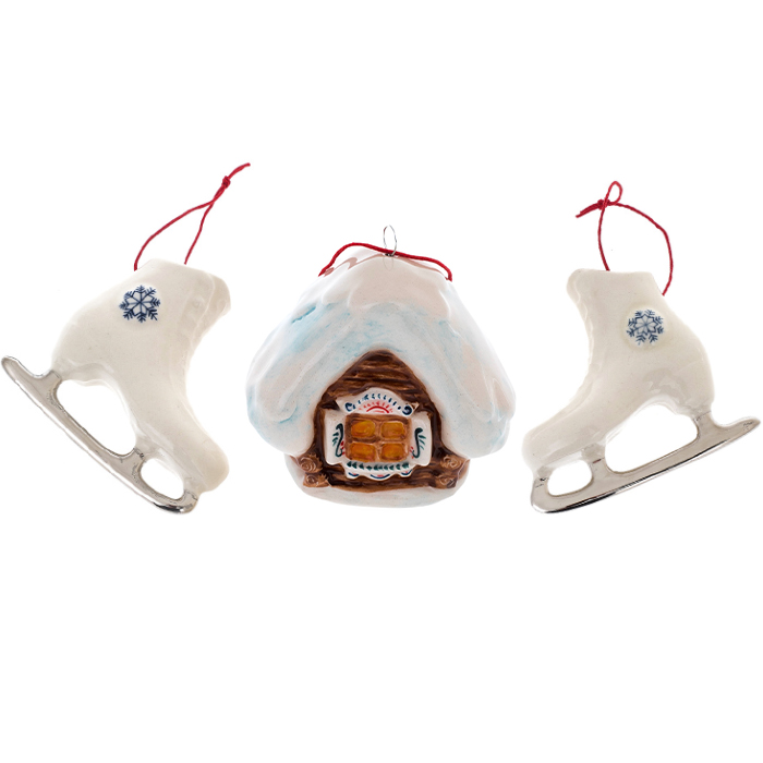 Набор фарфоровых ёлочных игрушек "Избушка с коньками" в подарочной коробке