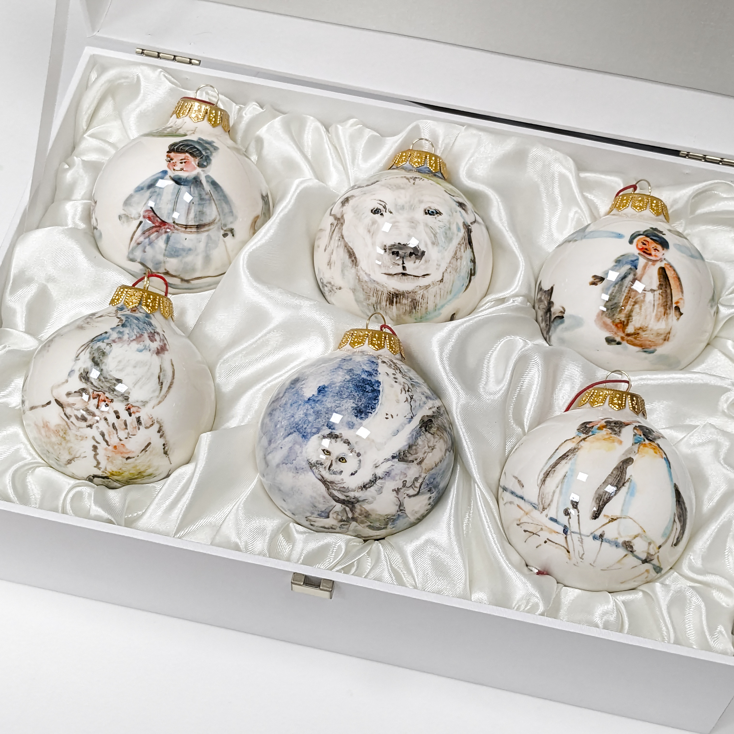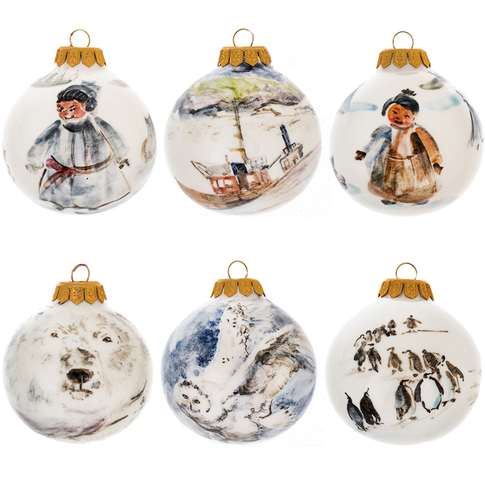 Комплектация: Ёлочный шар "Заполярье: пингвины", "Заполярье: сова", "Заполярье: медведь, голубь", "Заполярье: эскимос, лисы", "Заполярье: эскимос, сани", "Заполярье: медведь, корабль".