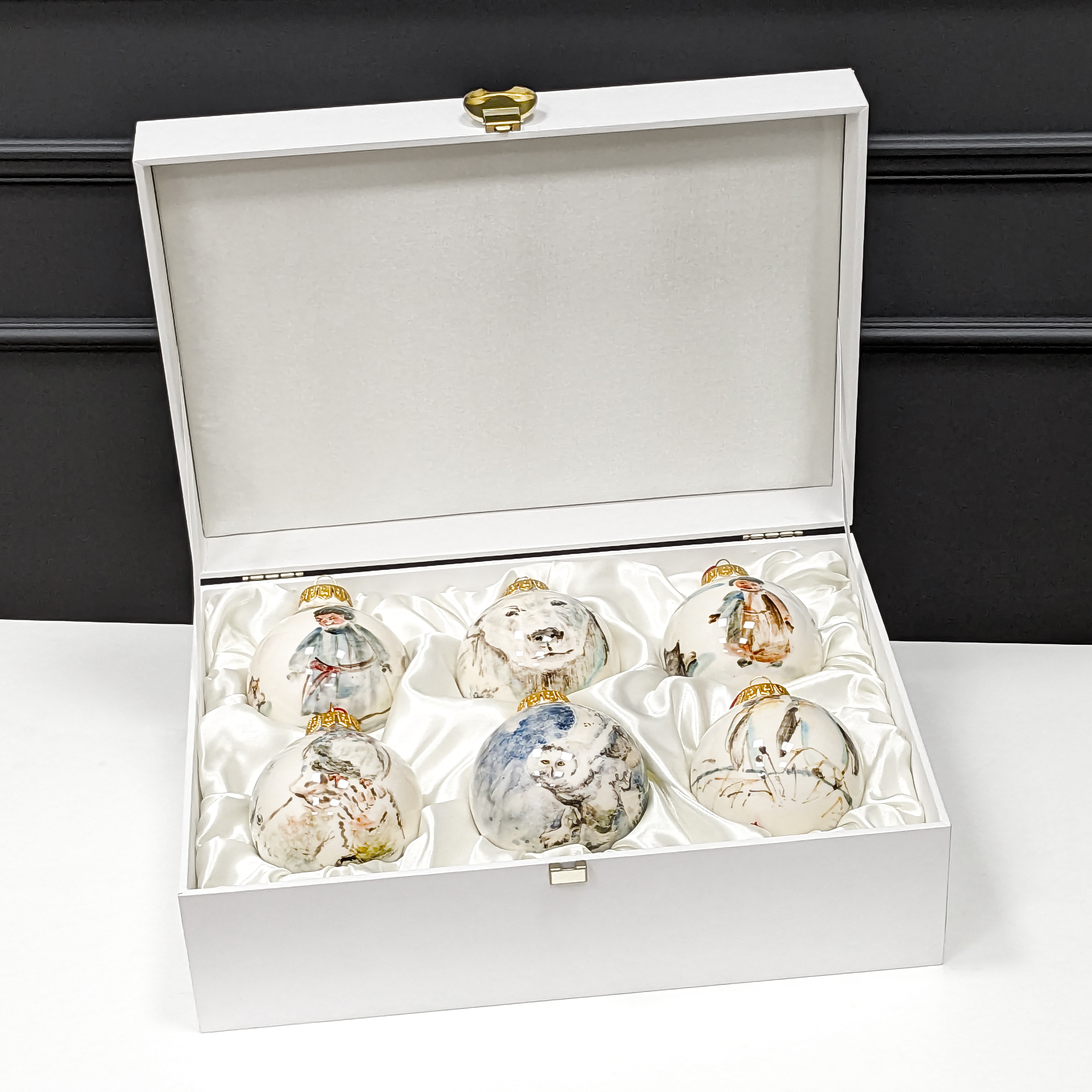 Набор фарфоровых ёлочных шаров "Заполярье: Коллекция" в подарочной коробке