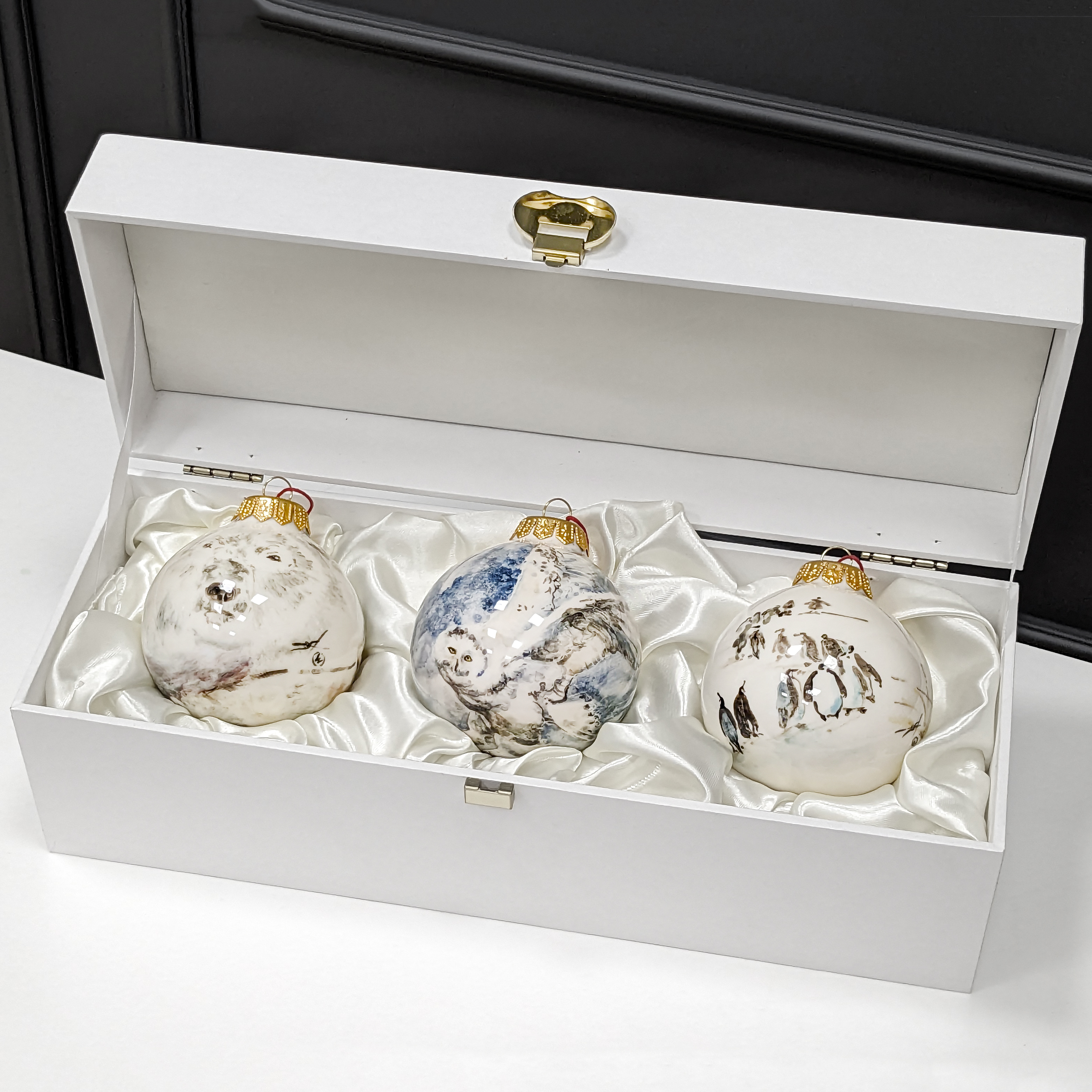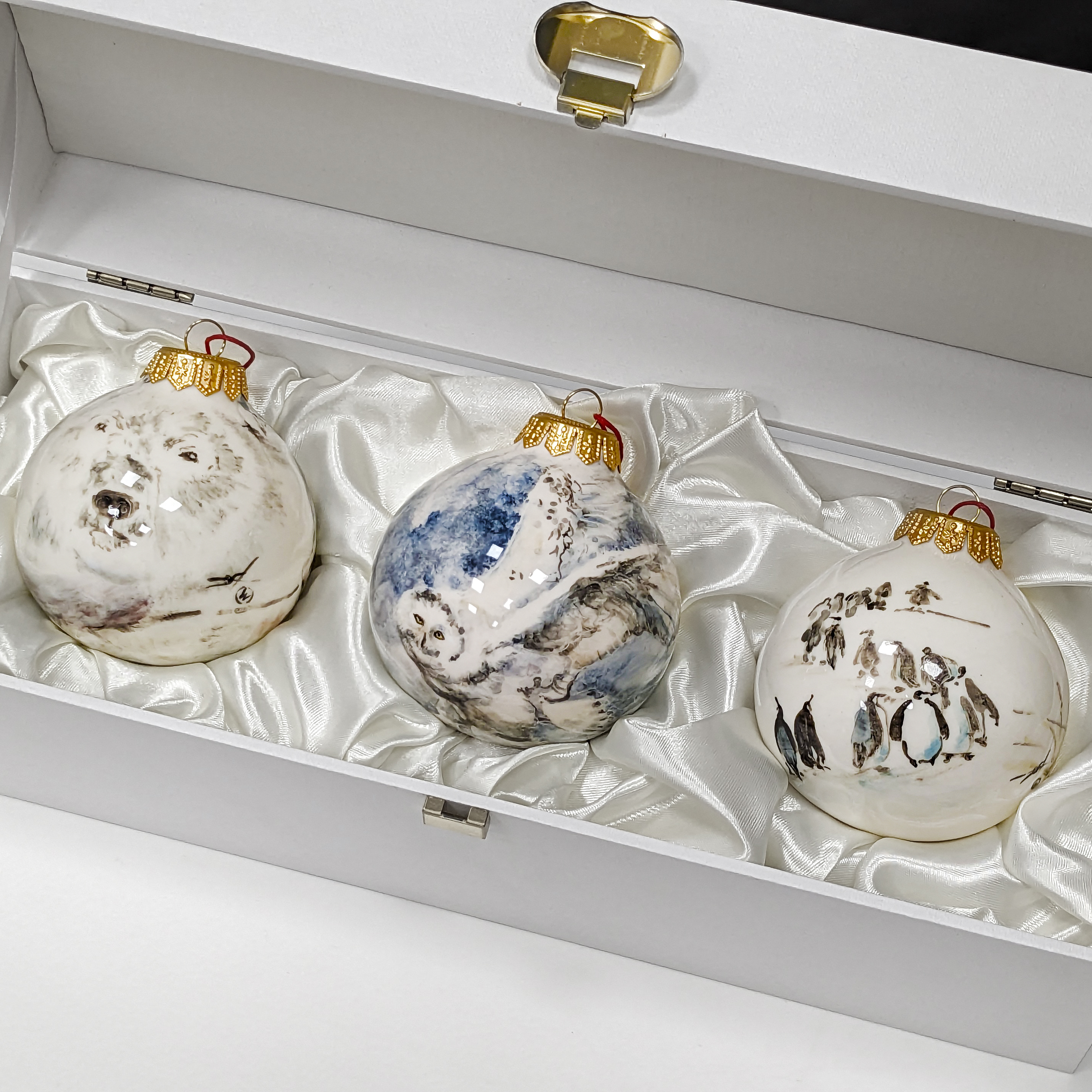 Набор фарфоровых ёлочных шаров "Заполярье: Животные" в подарочной коробке