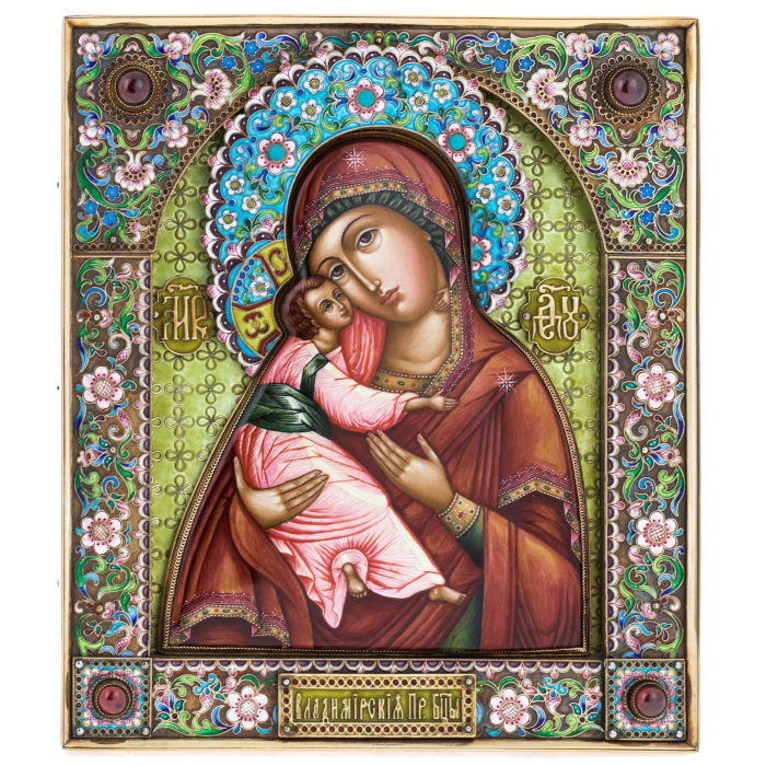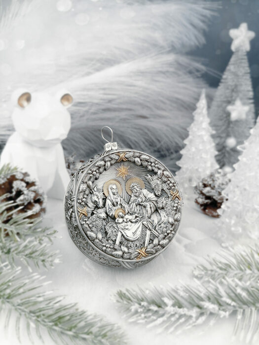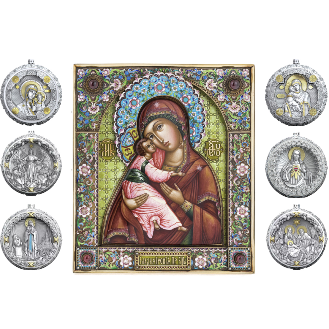 Набор подарочный с шарами и иконой "Божья Матерь Владимирская" из серебра, 6 шаров