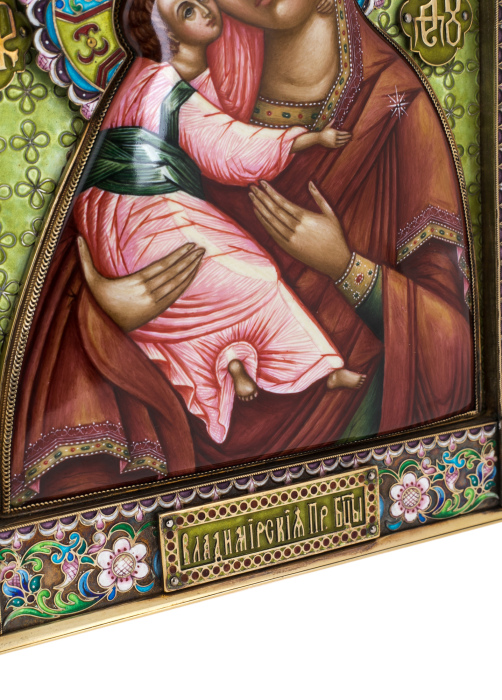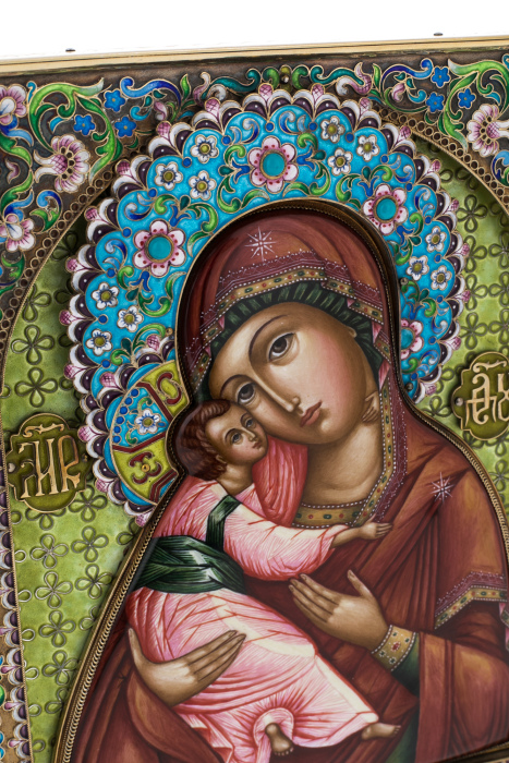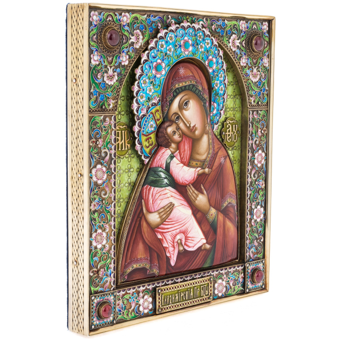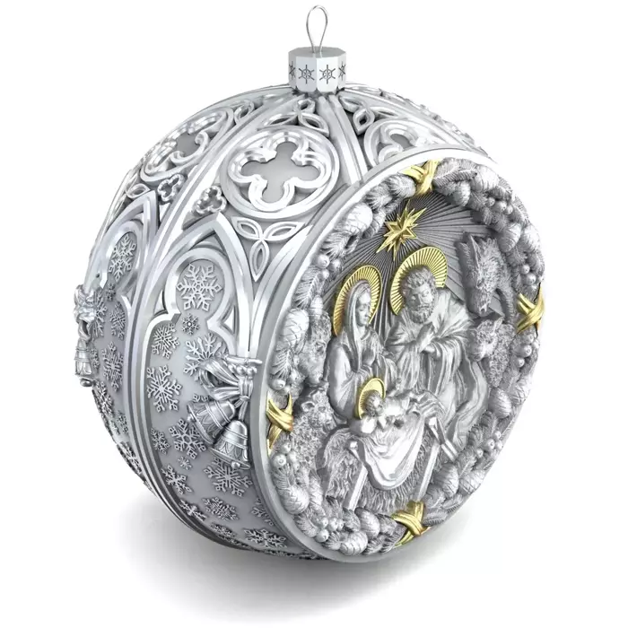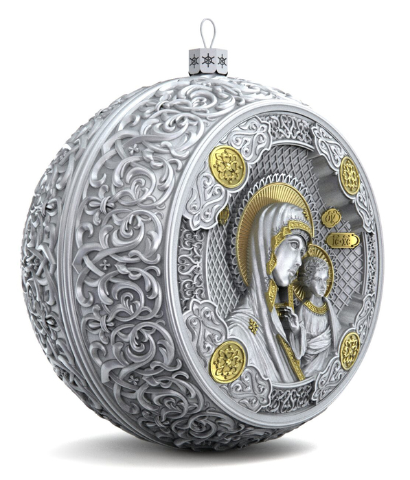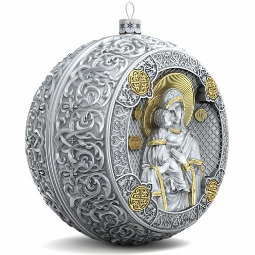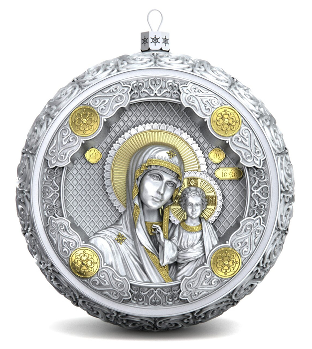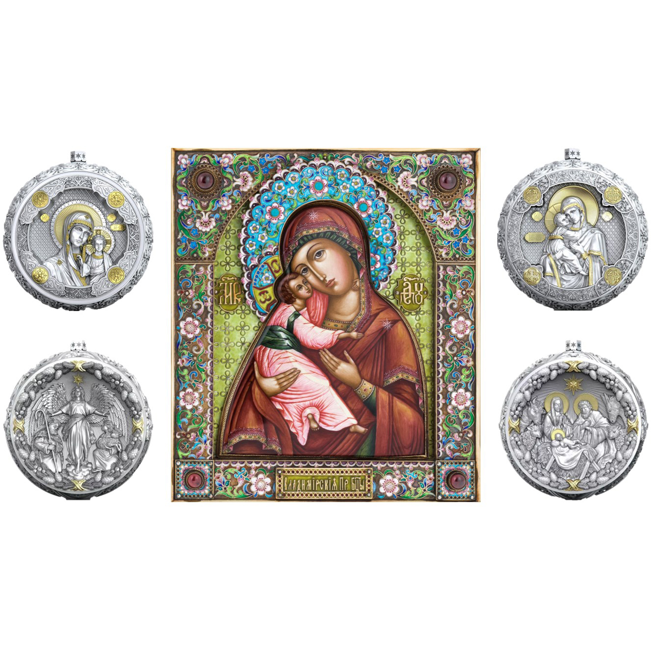 Набор подарочный с шарами и иконой "Божья Матерь Владимирская" из серебра, 4 шара