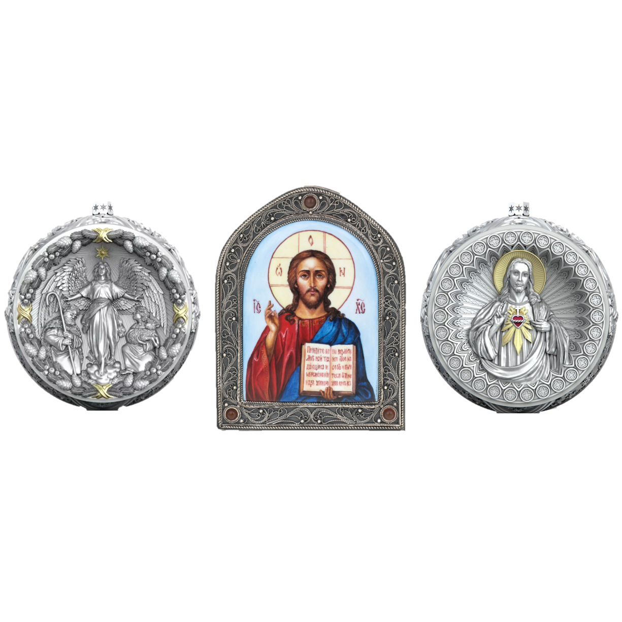 Набор подарочный с шарами и иконой "Иисус Христос" из серебра, 2 шара