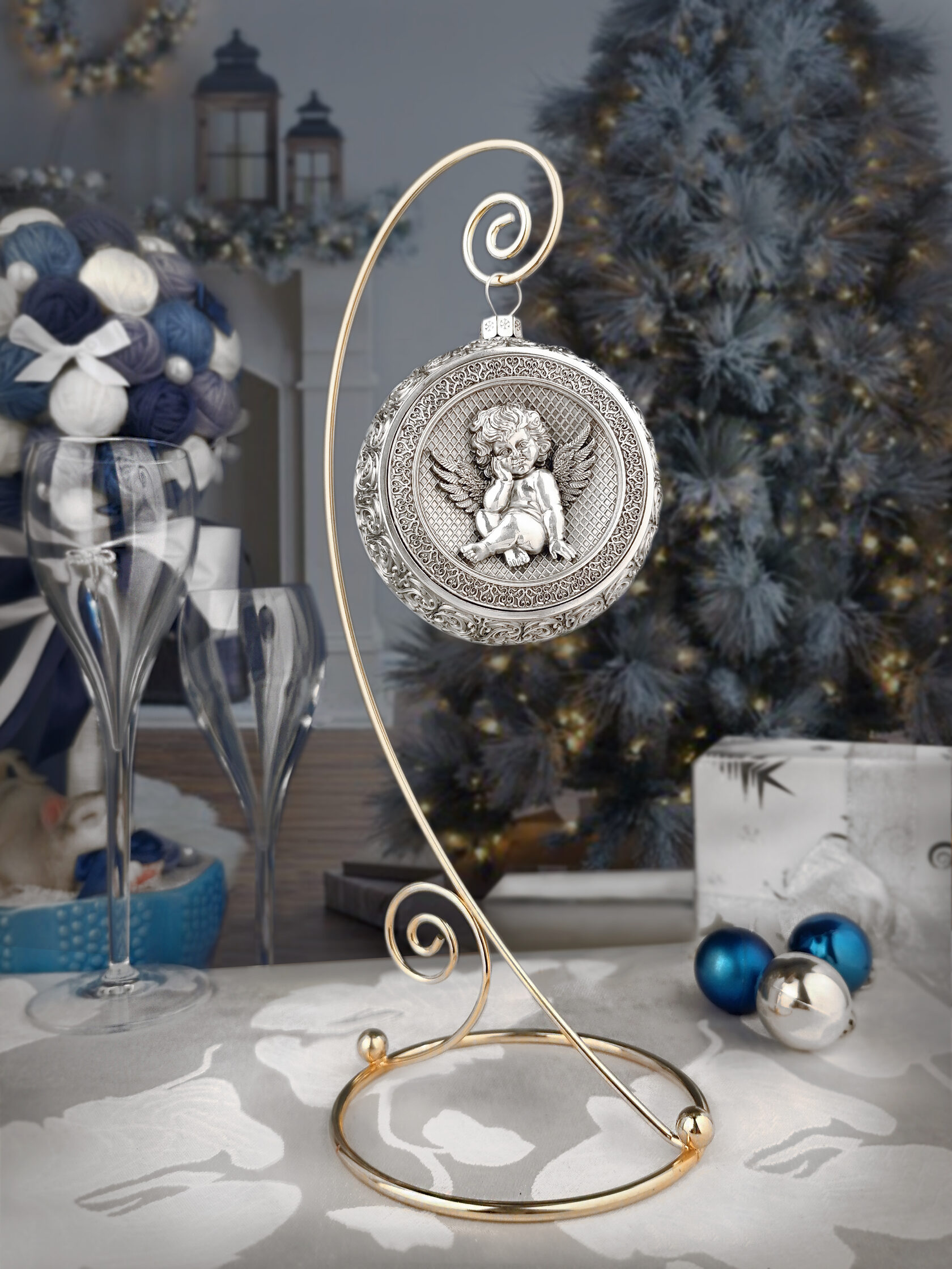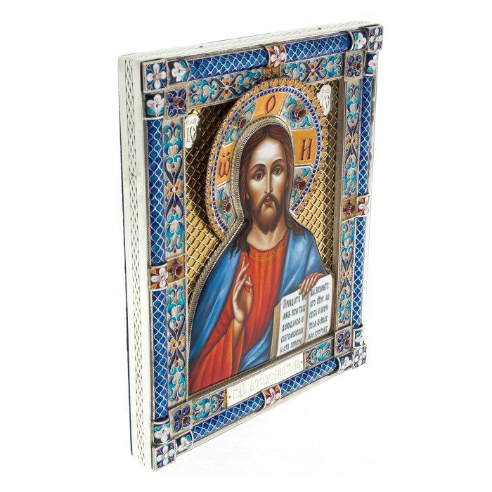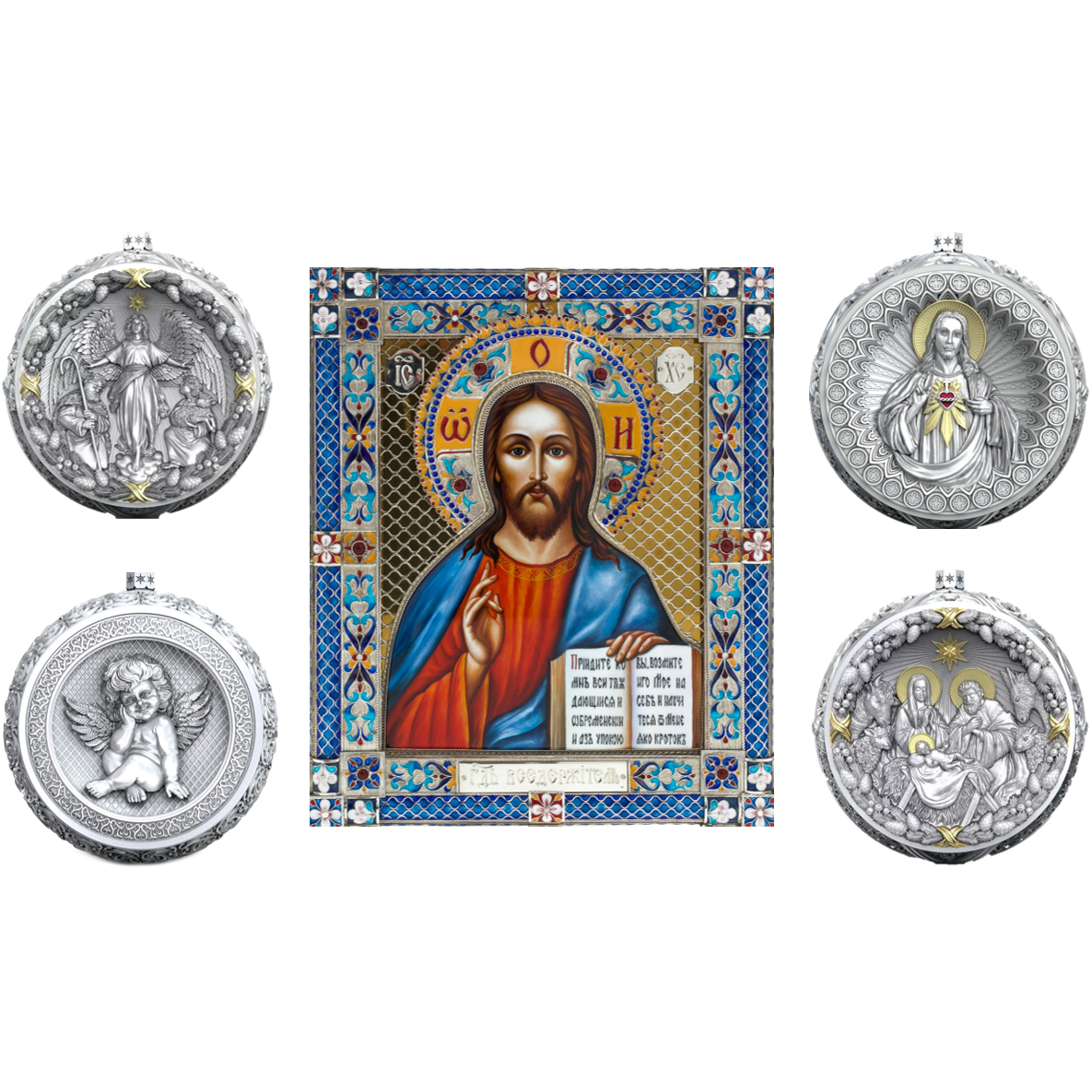 Набор подарочный с шарами и иконой "Спаситель. Иисус Христос" из серебра, 4 шара