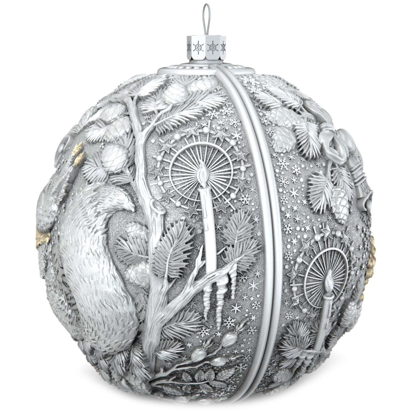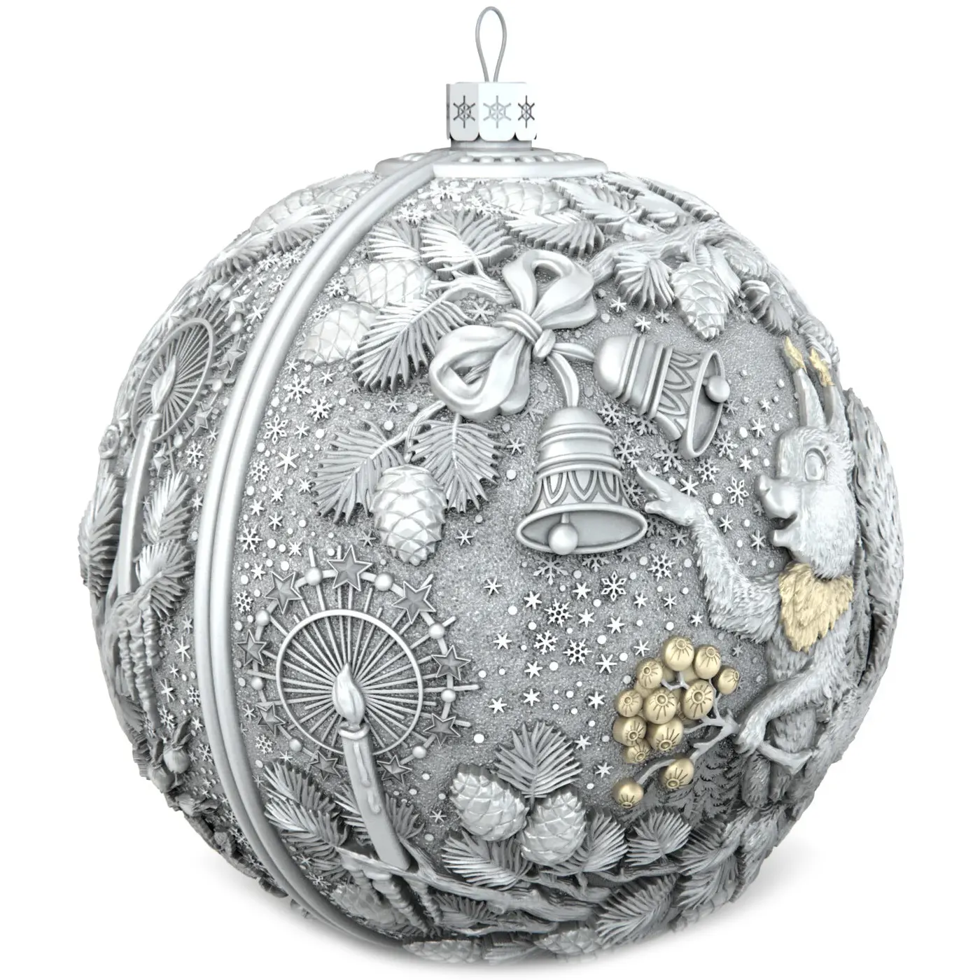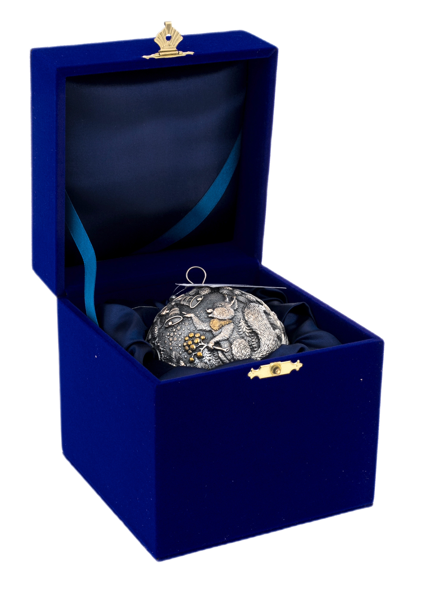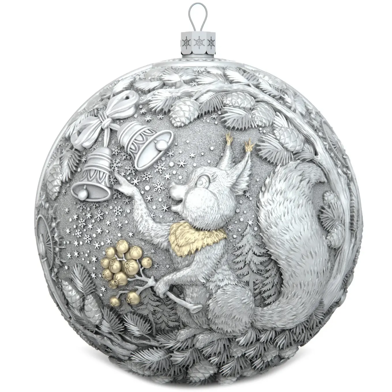 Серебряный елочный шар "Белочка с орешками" с позолотой