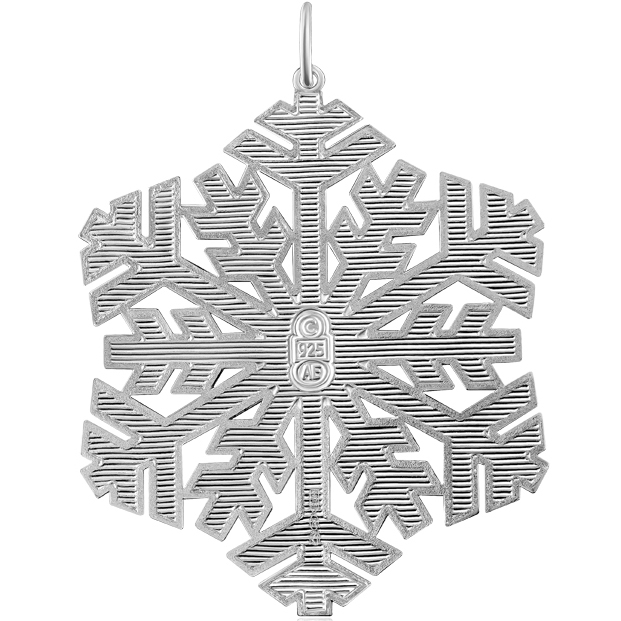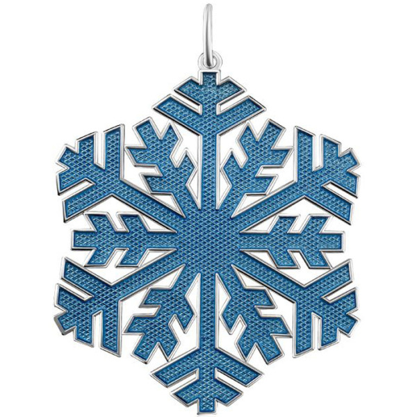 Изделие ручной работы из серебра 925 пробы отличается точной детализацией. Шар представляет собой переплетение серебряных и эмалевых синих полос, создающих новогоднее настроение. На поверхности эмали расположены миниатюрные звездочки из бесцветных фианитов.