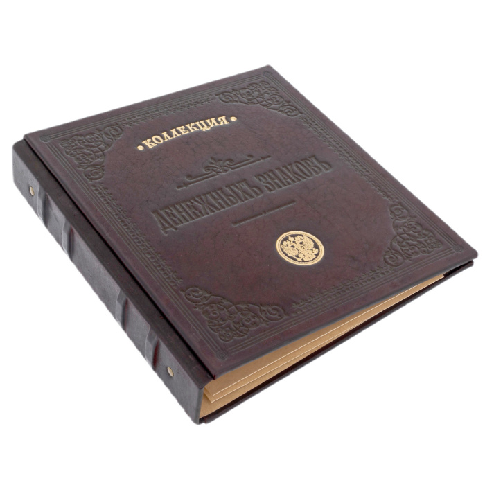 Тиснение в старинном стиле с дореформенной надписью «Денежныхъ знаковъ» и гербом России придаёт изделию особую торжественность, отсылая к эпохе, когда деньги имели не только номинал, но и художественную ценность. Внутри предусмотрен кольцевой механизм для удобного хранения и систематизации коллекции, а плотные страницы позволяют бережно размещать банкноты и монеты разных эпох.