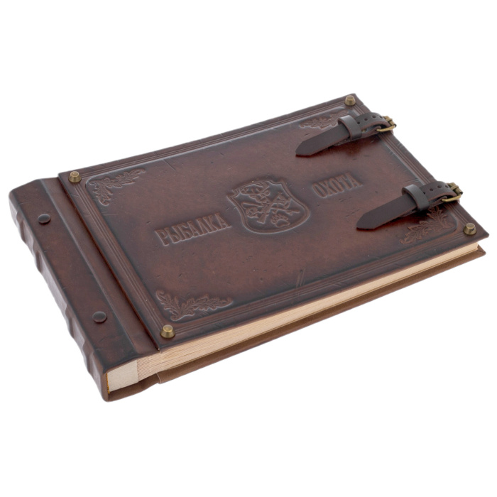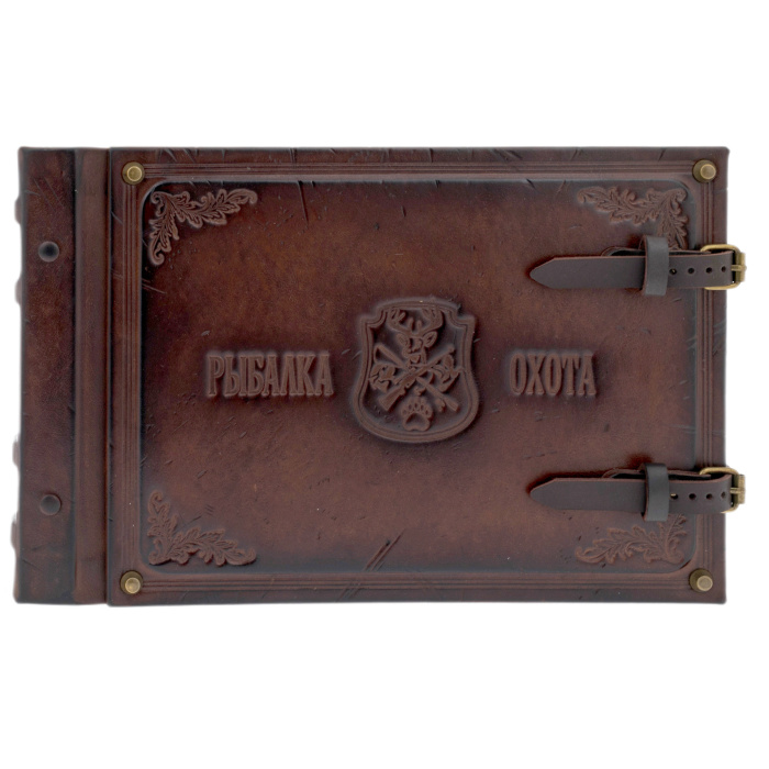 Фотоальбом из натуральной кожи "Рыбалка и Охота" темно-коричневый