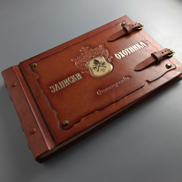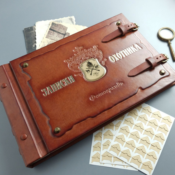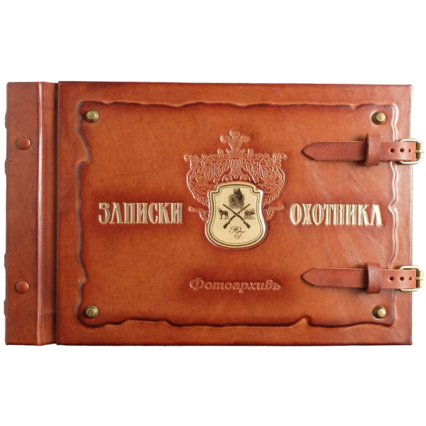 Этот альбом создан не для того, чтобы просто хранить снимки. Он — как тёплый вечер в охотничьем домике: за окном воет ветер, в камине потрескивают дрова, а в руках — кожаная книга с гербом на обложке: перекрещенные ружья, силуэты медведя, лося и волка, и монограмма владельца. Здесь собираются не фото — а доказательства жизни: отпечатки памяти, запах костра, грязь на сапогах, след от варенья, карта деда на газетном обрывке.