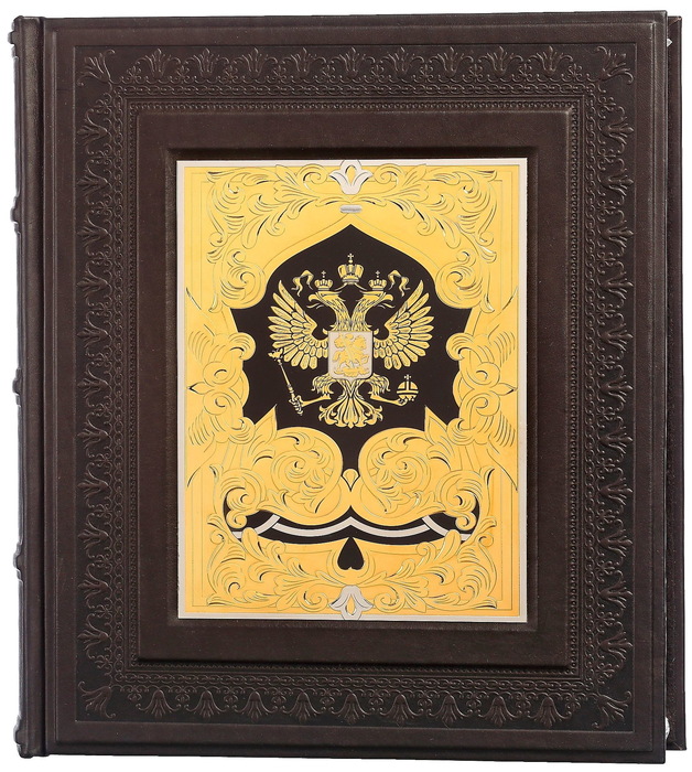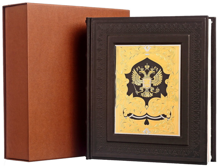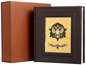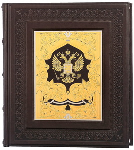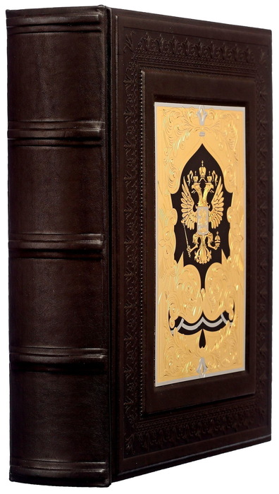 Исполнение:кожаный переплет ручной работы,золотое и блинтовое тиснение, торшонированный и окрашенный обрез, мелованная бумага.