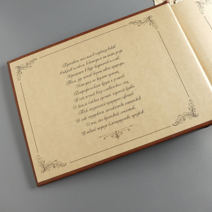 По заказу мы можем сделать фотоальбом формата А3, А4 на 20, 40, 60, 80 и более страниц и оттеснить любые инициалы, логотип, знак, герб. Предварительно утверждаются предложенные варианты эскиза, размер монограммы и тип шрифта.