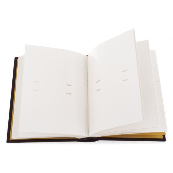 Внутри имеется блок магнитных листов, к которым фотографии прикрепляются с помощью наклеивающегося латекса. Изображения защищены от повреждений и негативных факторов за счет пленки. Он состоит из 40 файлов, который составляют 80 страниц. Крепятся листы на металлический кольцевой механизм, это обеспечивает большую надежность.