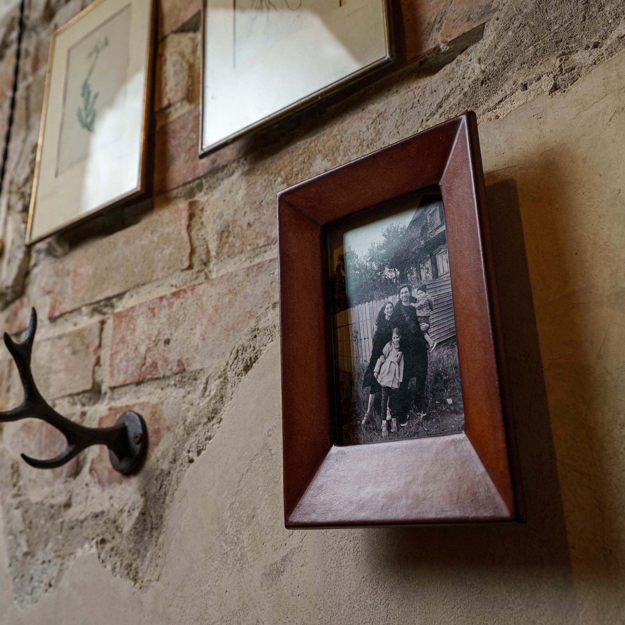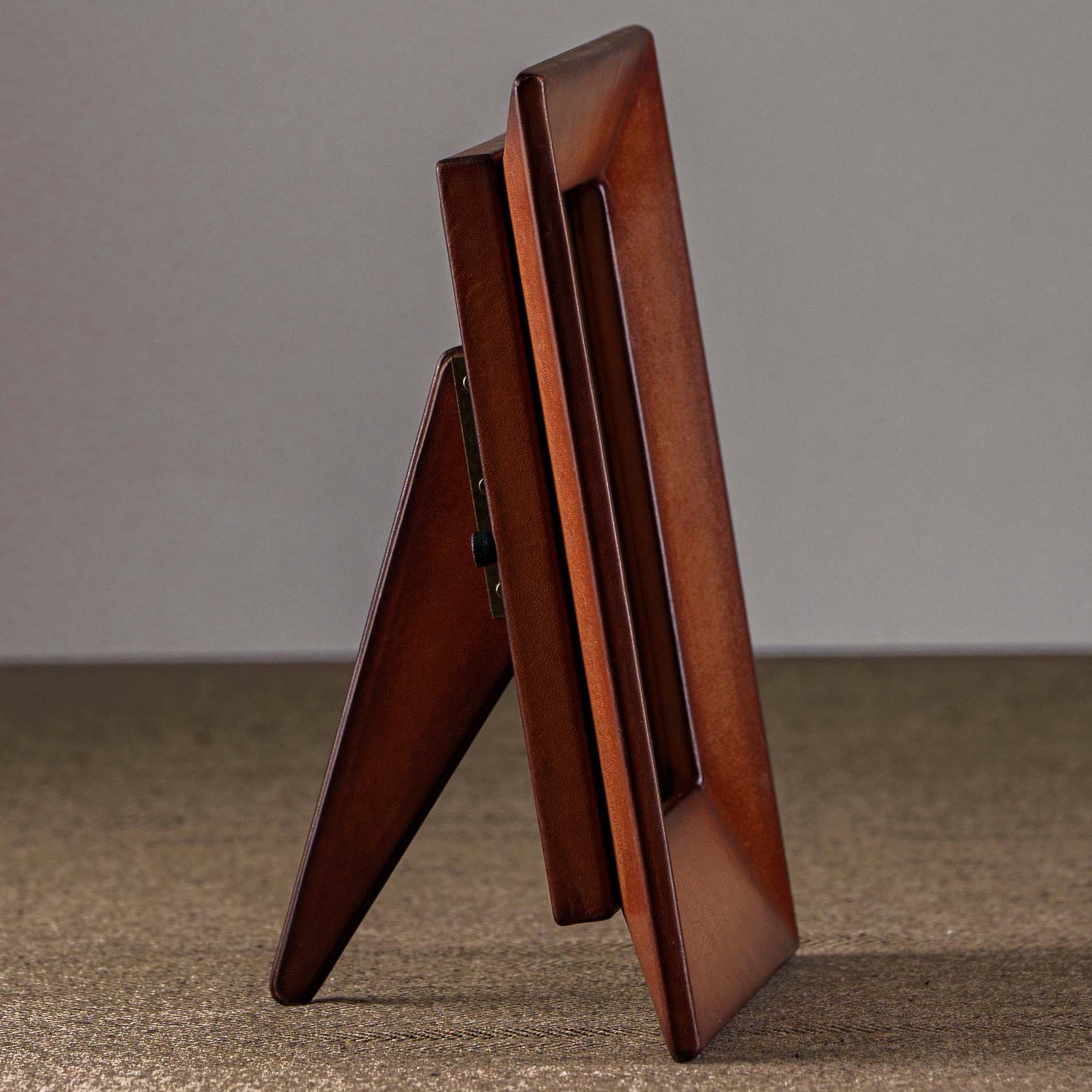 Особенностью данной фоторамки является то, что даже ее ножка выполнена из натуральной кожи, и она приятно примагничивается при открытии, добавляя удобство и изысканность в использовании.