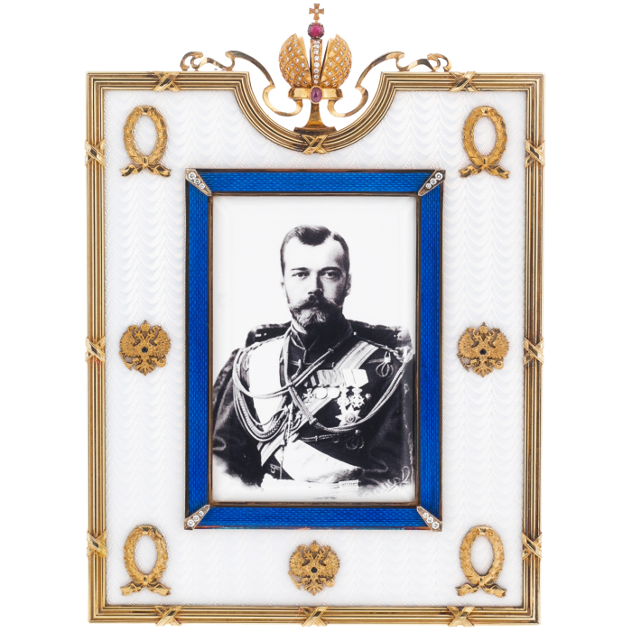Материалы:серебро, бриллианты, сапфиры, золочение, эмаль гильоше, яшма.