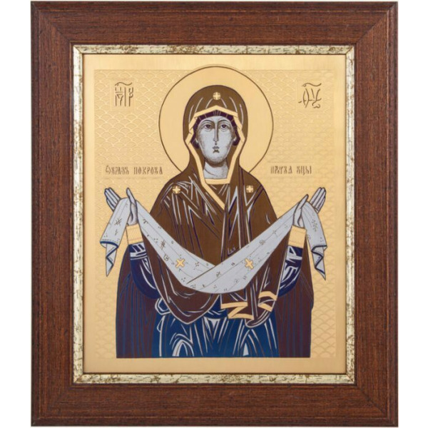 Икона с художественным литьём "Покрова Божьей Матери"Икона с художественным литьём "Покрова Божьей Матери"Этот образ Покрова Пресвятой Богородицы являет собой сочетание духовной глубины и ювелирного мастерства, воплощенного в каждой линии. Лик Богородицы, выполненный с потрясающей детализацией, словно излучает благодать и защиту, подчеркивая её роль заступницы и покровительницы. Золотое сияние оклада символизирует небесный свет, нисходящий на тех, кто обращается к ней в молитвах.