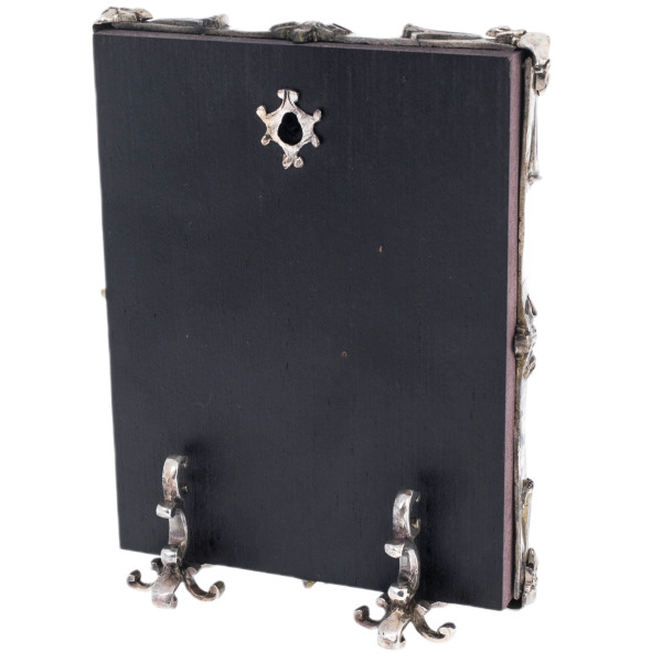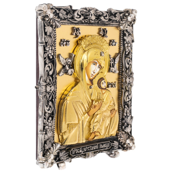 Каждая деталь, выполненная мастерами с величайшей тщательностью, несет в себе не только техническое совершенство, но и глубокий символизм. Оклад, украшенный изысканными бронзовыми и серебряными элементами, создает атмосферу величия и благородства. Рама, выполненная в виде декоративного литья, олицетворяет защиту и силу, подкрепленные божественной благодатью, а сами ангелы, изображенные с обеих сторон, символизируют постоянное присутствие небесных сил рядом с верующими.