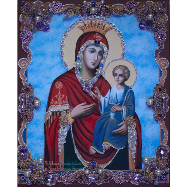 Икона с драгоценными камнями "Владимирская Богоматерь"