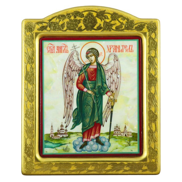 Икона "Ангел Хранитель" с перламутром в золотой раме