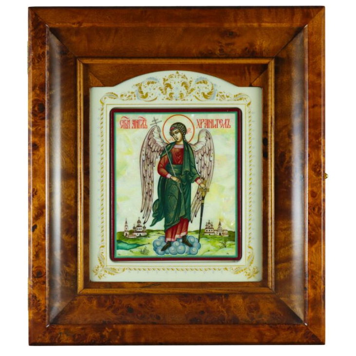 Икона "Ангел Хранитель" в киоте на натуральном перламутре
