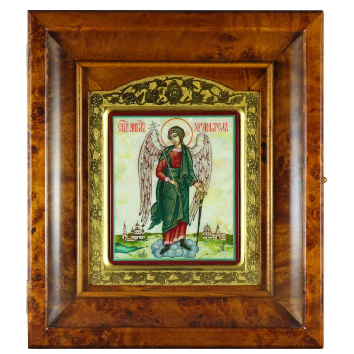 Икона "Ангел Хранитель" в золотой раме и киоте на натуральном перламутре