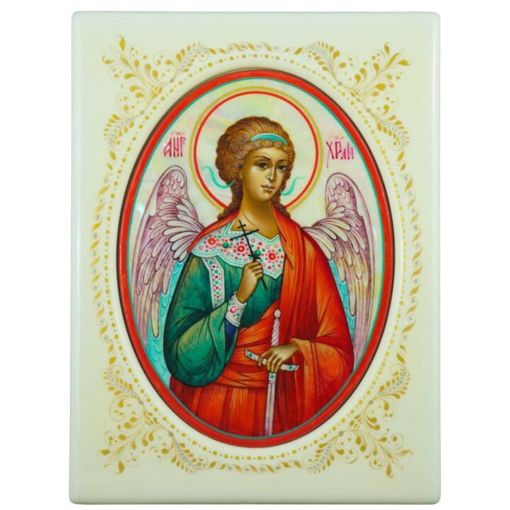 Икона с перламутром "Ангел Хранитель" в белой раме