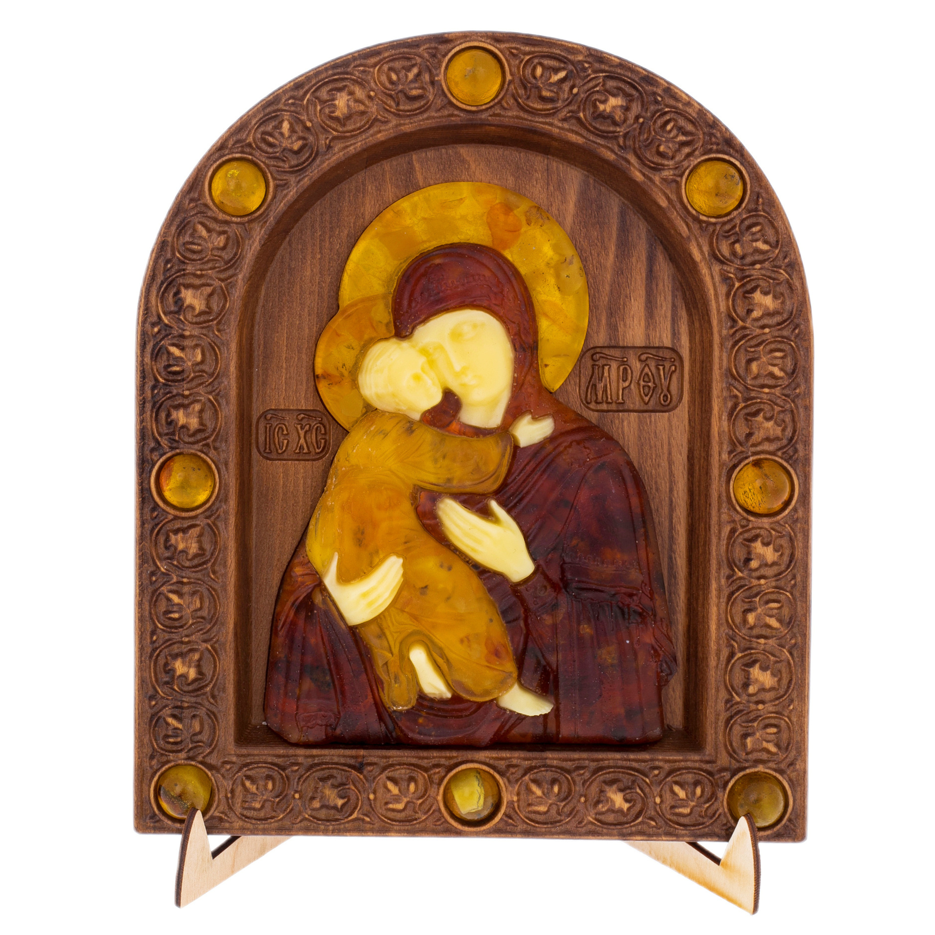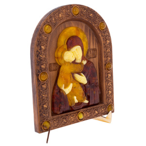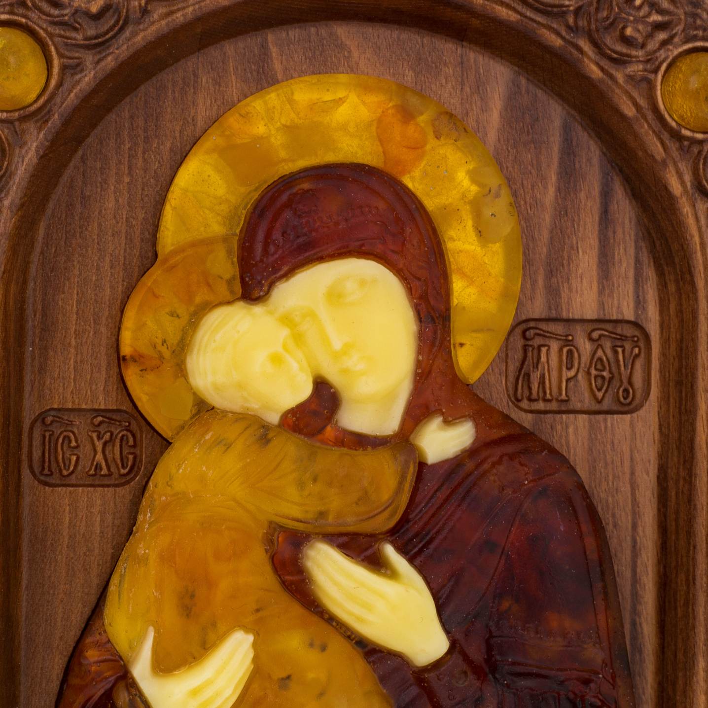 Икона из бука и янтаря "Владимирская Богоматерь" большая