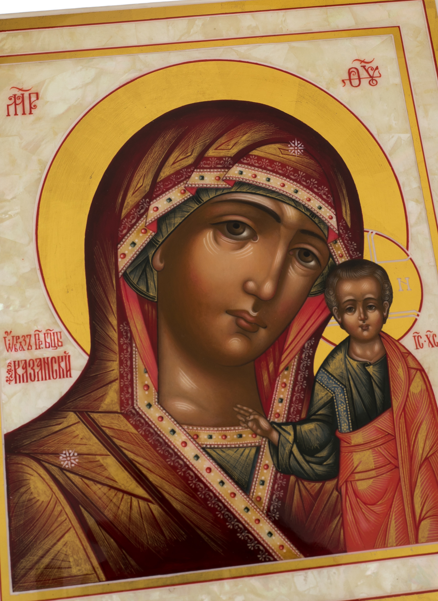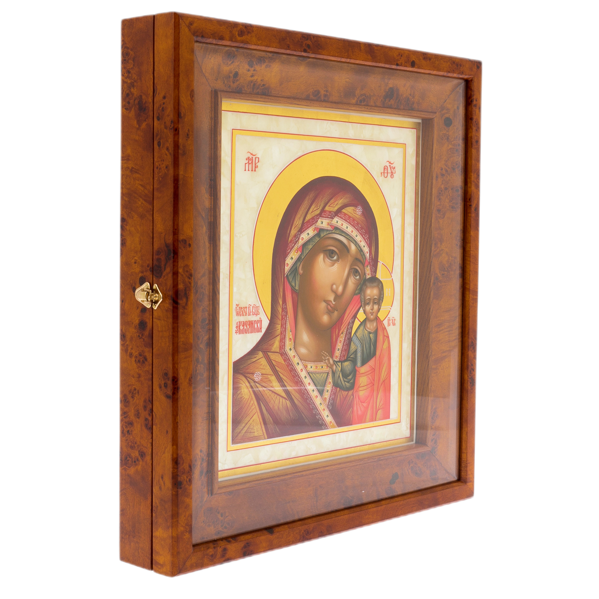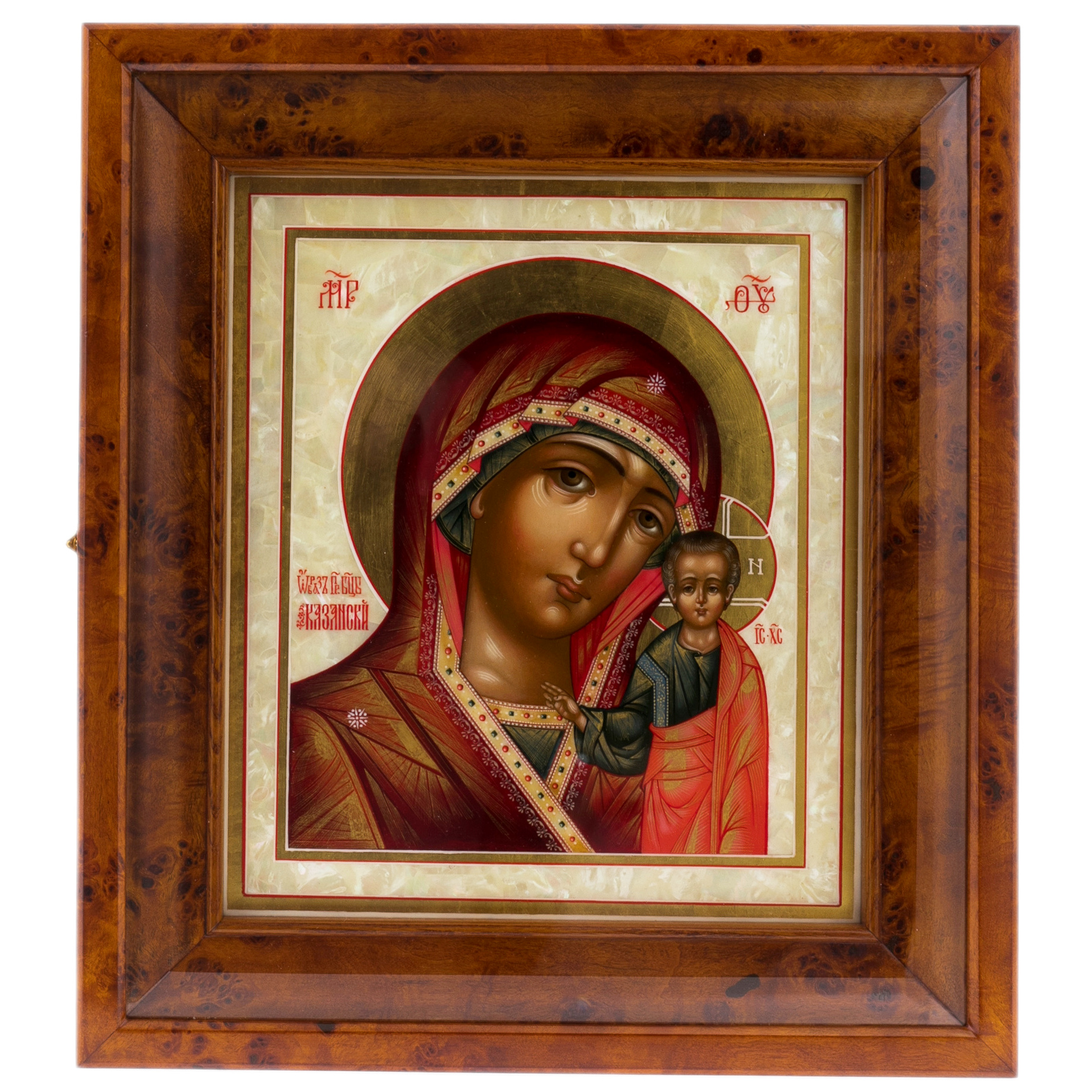 Икона на натуральном перламутре "Казанская Богоматерь" в киоте