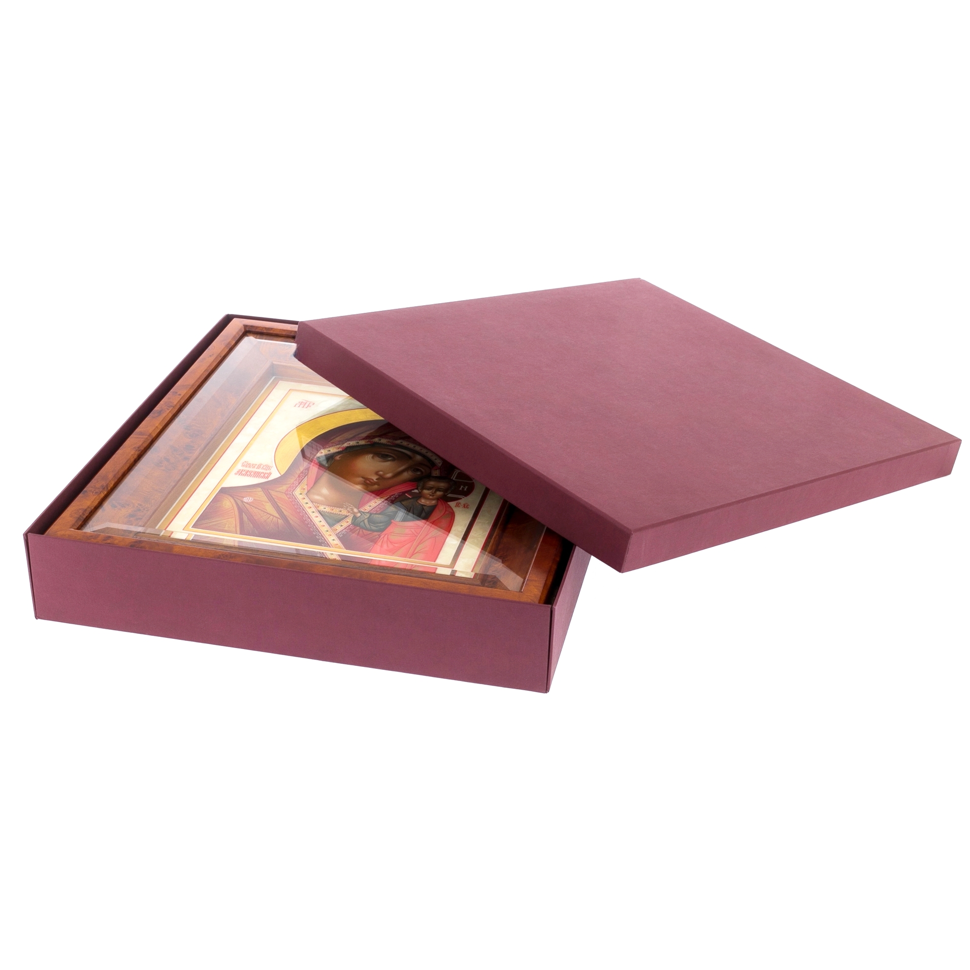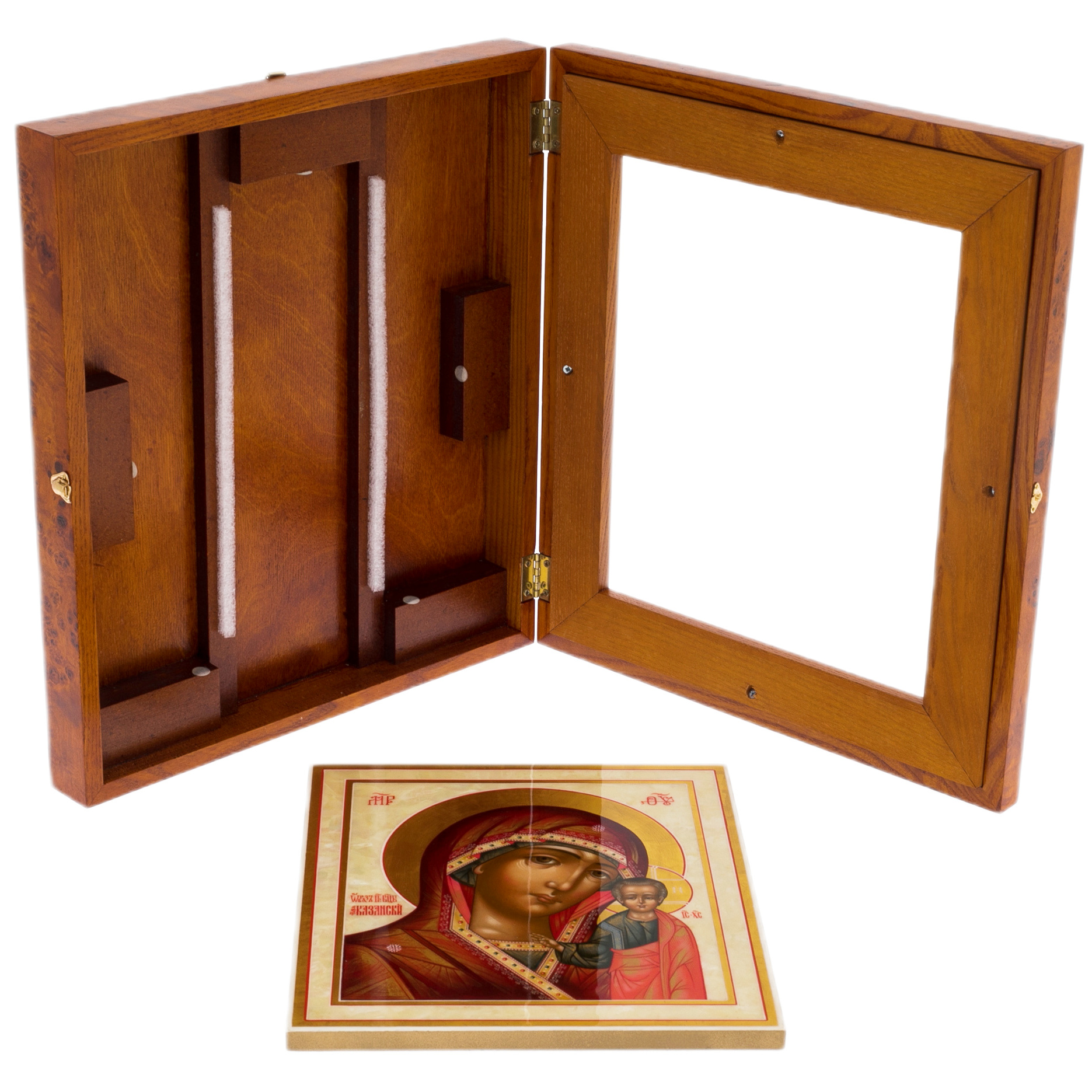 Киот:массив берёзы, шпон тополя тонированный, лак, стекло.
