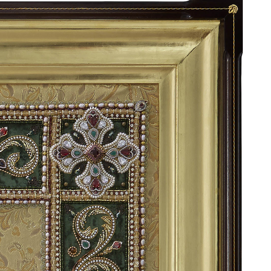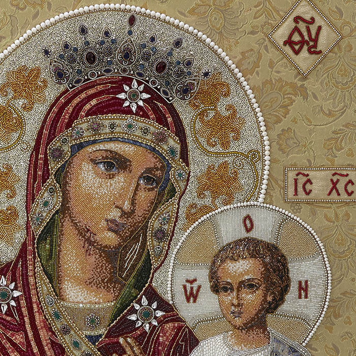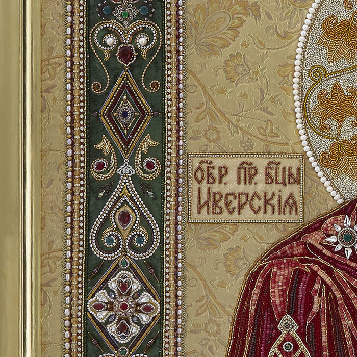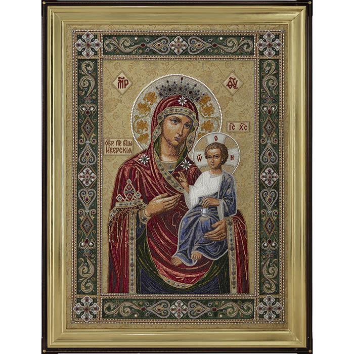 Вышитая икона "Богоматерь Иверская" в раме и киоте