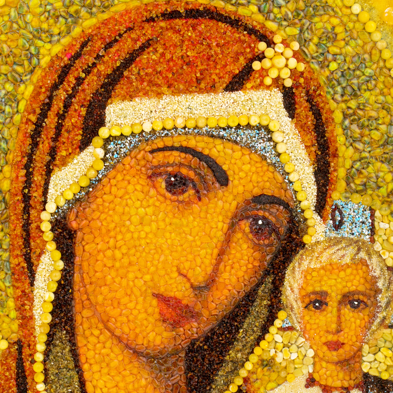 Икона из янтарной мозаики "Казанская Божией Матери"
