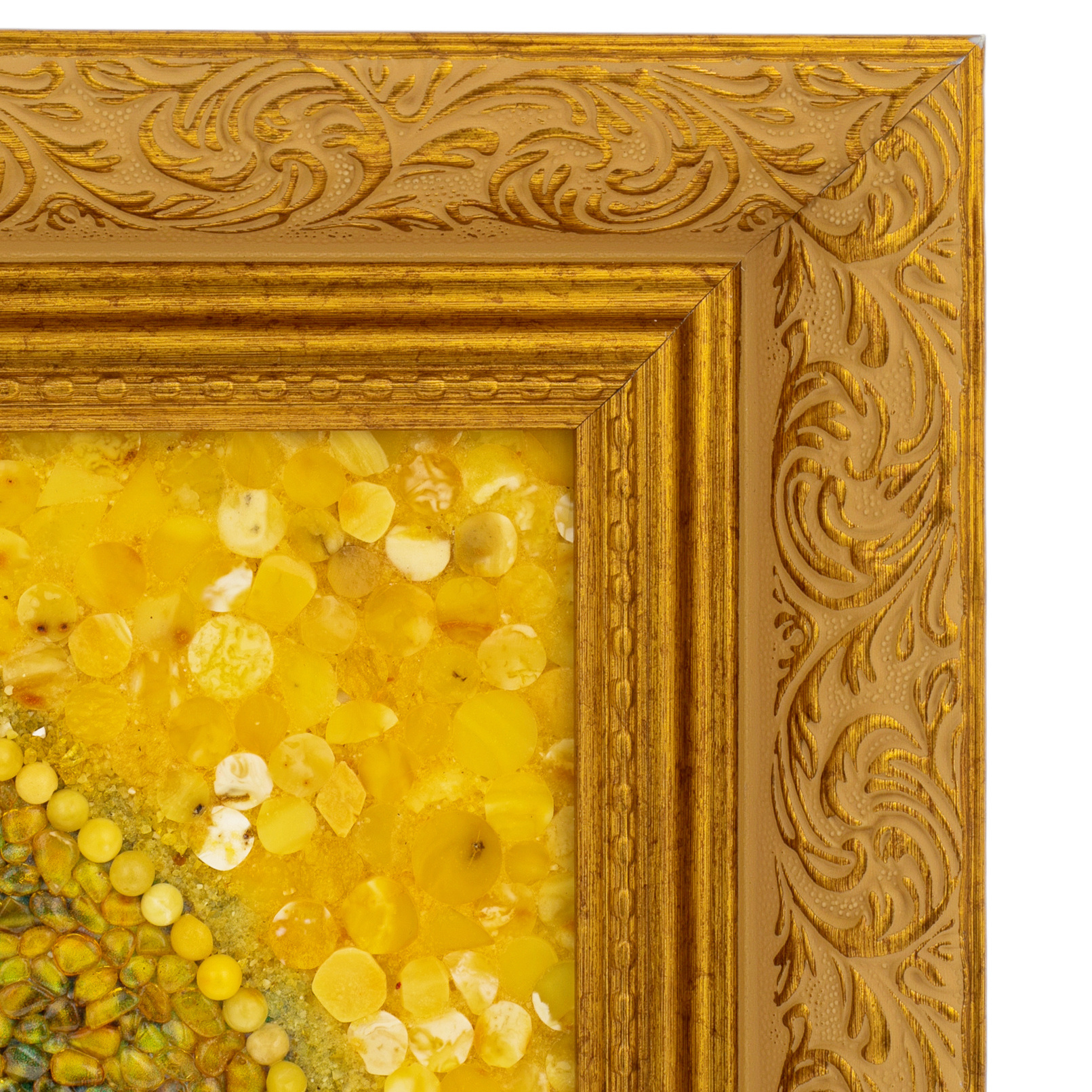 Икона из янтарной мозаики «Казанская Божией Матери» являет собой редкий пример сакрального искусства, исполненного в благородной технике янтарной инкрустации. Каждая грань мерцающих камней выложена вручную, создавая переливчатую поверхность, наполненную теплым сиянием солнца. Лики Богородицы и Младенца Христова обретены через тончайшую игру оттенков — от медово-золотых до насыщенно-коньячных, что придает образу особую духовную глубину и живую теплоту.