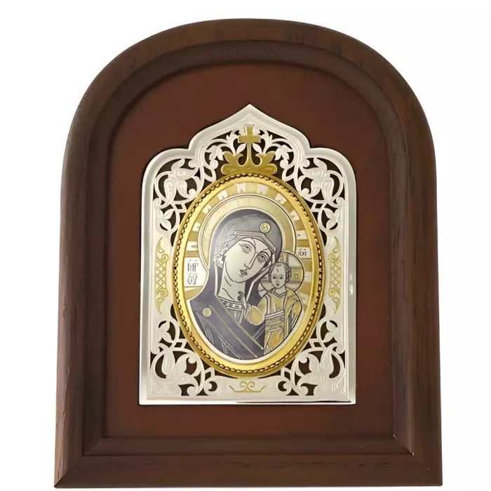 Казанская икона Божией Матери на базе Владимирской иконы, финифтьКазанская икона Божией Матери на базе Владимирской иконы, финифтьКазанская икона Богородицы на базе Владимирской иконы, выполненная из финифти, представляет собой не просто религиозный артефакт, а истинный шедевр, способный преобразить любое пространство и наполнить его атмосферой святости и благодати. Каждый штрих, каждая деталь этой иконы пронизаны глубоким символизмом, который открывает перед обладателем двери к духовным высотам и внутреннему спокойствию. Нежные оттенки, переливающиеся на поверхности финифти, словно отражают свет небес, создавая ощущение живого присутствия божественного.