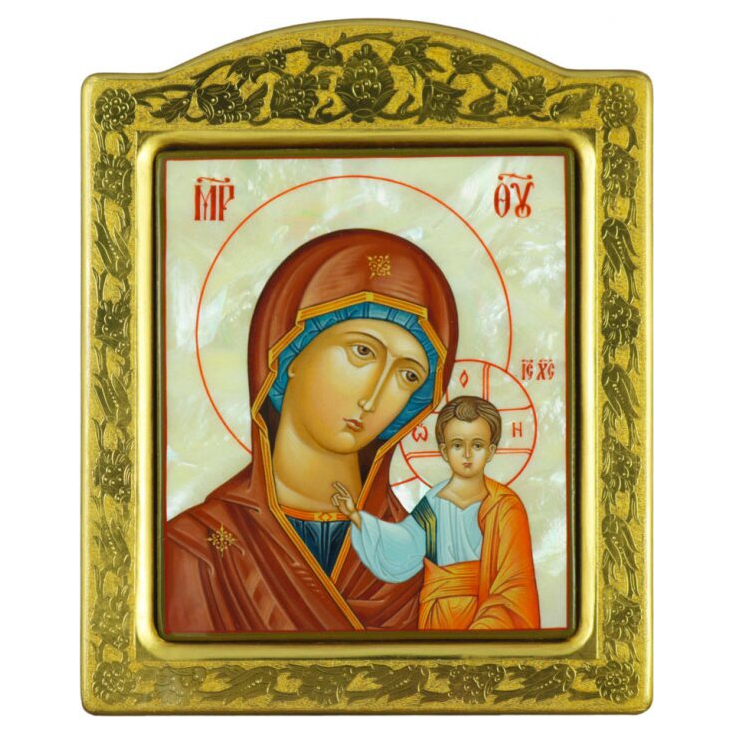 Икона "Казанская Богоматерь" с перламутром в золотой раме