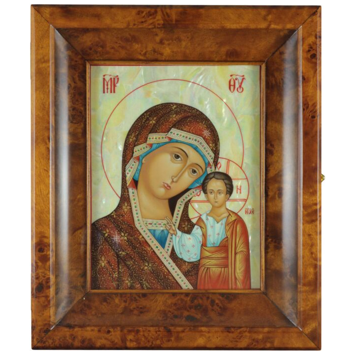 Икона на натуральном перламутре "Казанская Богоматерь" в киоте