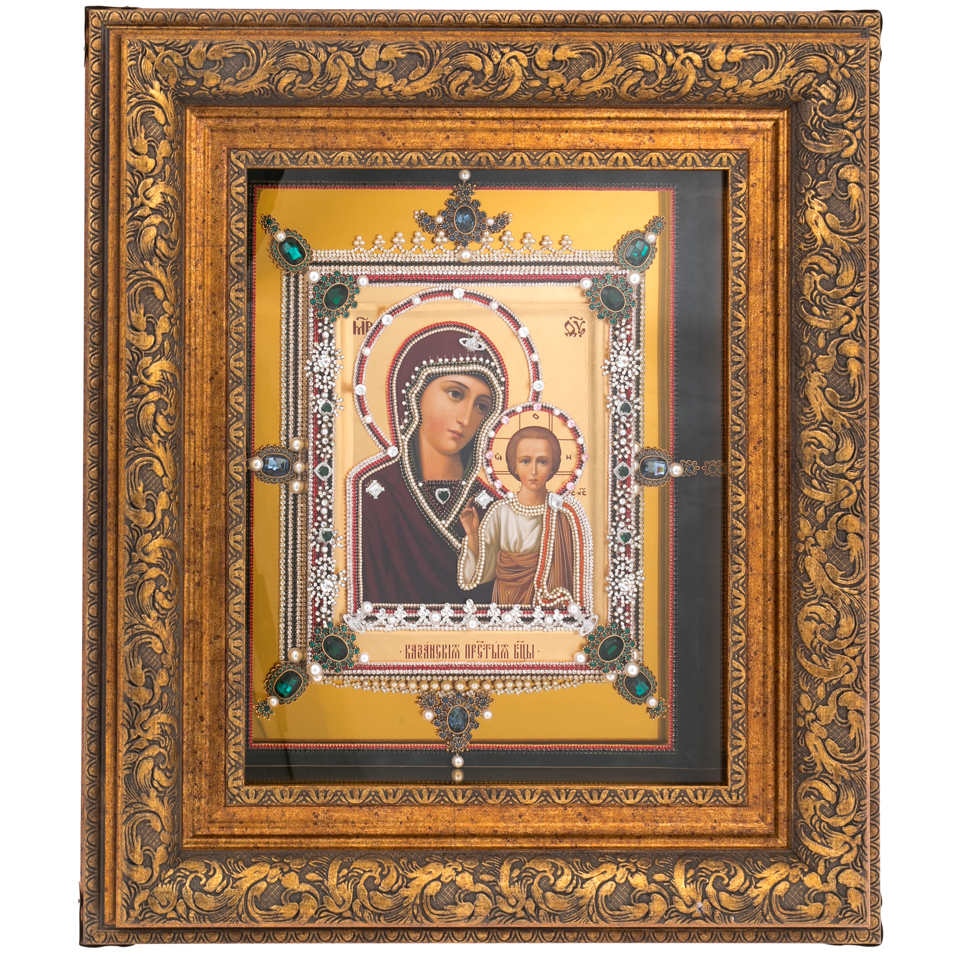 Икона с драгоценными камнями "Казанская Божья Матерь"