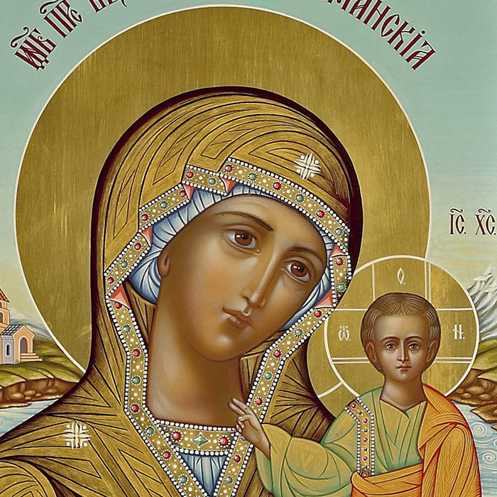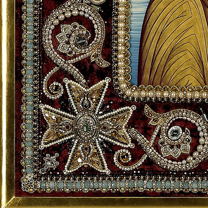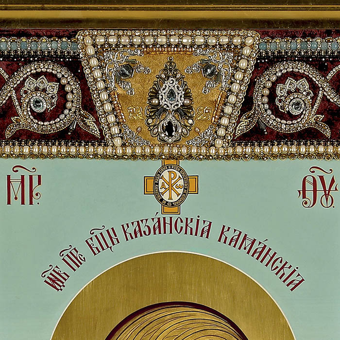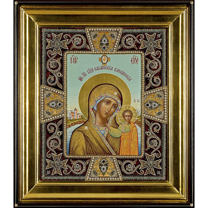 Вышитая икона "Богоматерь Казанская" в раме и киоте