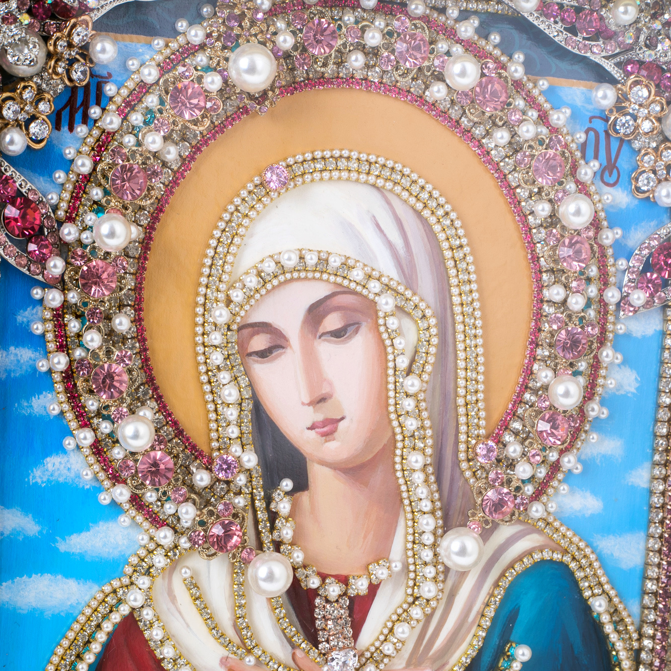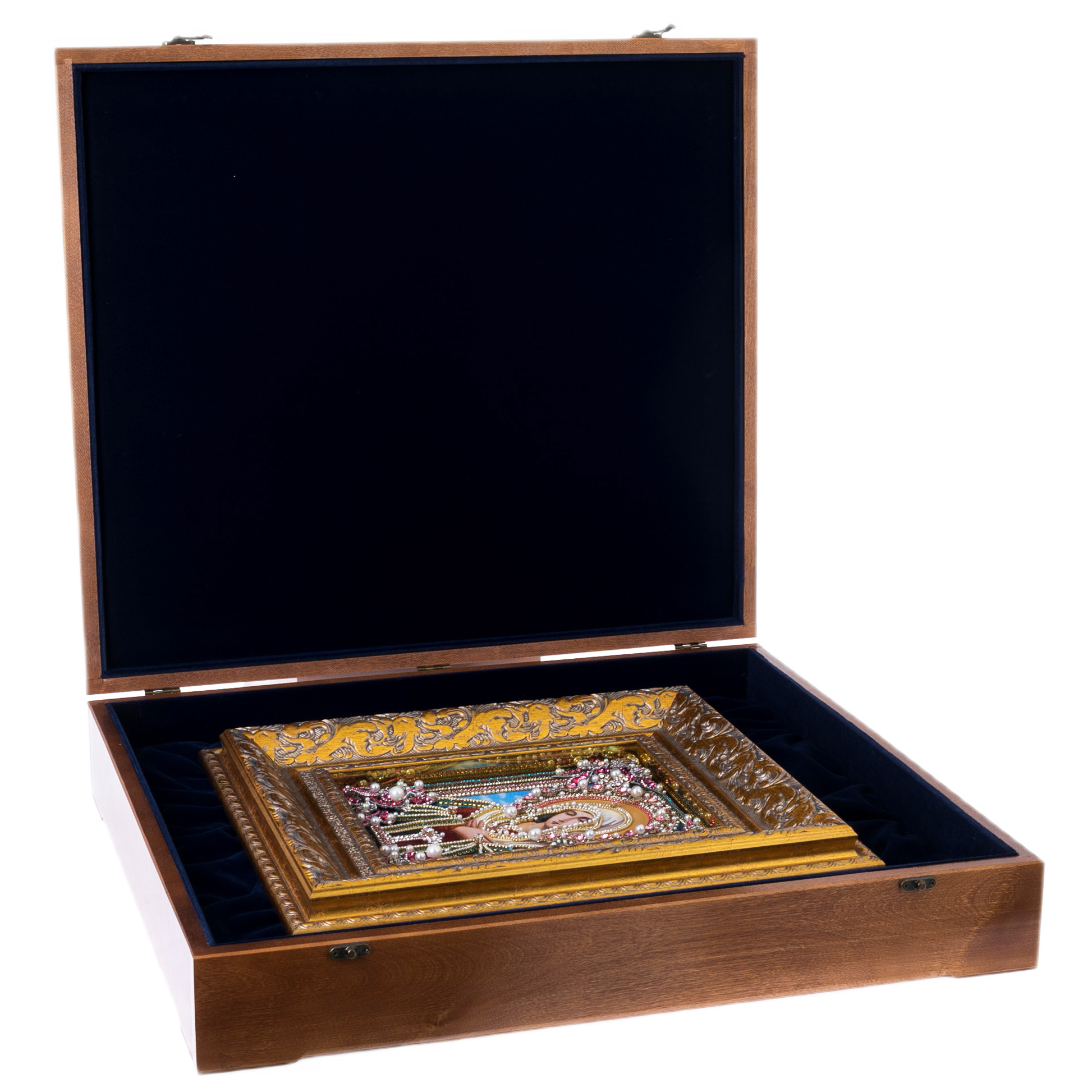 Материалы:липовая доска левкас, яичная темпера, золочение сусальным золотом, стразы.