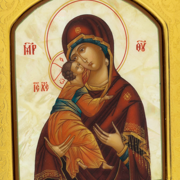 Владимирская икона Божией Матери цвет янтарь, финифтьВладимирская икона Божией Матери цвет янтарь, финифтьФинифть – древнейшее искусство миниатюрной живописи. Процесс изготовления невероятно сложен. Над созданием каждого изделия трудятся лучшие мастера-живописцы. Роспись по эмали практически вечно сохраняет чистоту, блеск и прозрачность цвета. Изделия ростовской финифти признаны ценителями искусства всего мира. Они хранятся в таких музеях, как Музей народного искусства в Москве, Государственный Исторический музей, Государственный Русский музей.