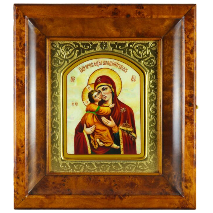 Credan Икона "Владимирская икона Божией Матери" прямоугольная Икона "Владимирская икона Божией Матери" прямоугольная Процесс нанесения художественной гравировки на поверхность изделия включает этапы травления, гравирования, ручной подрезки, никелирования, золочения и серебрения. Специальные покрытия, а также использование в производстве драгоценных металлов и камней превращают изделие в непревзойдённый изысканный шедевр.
