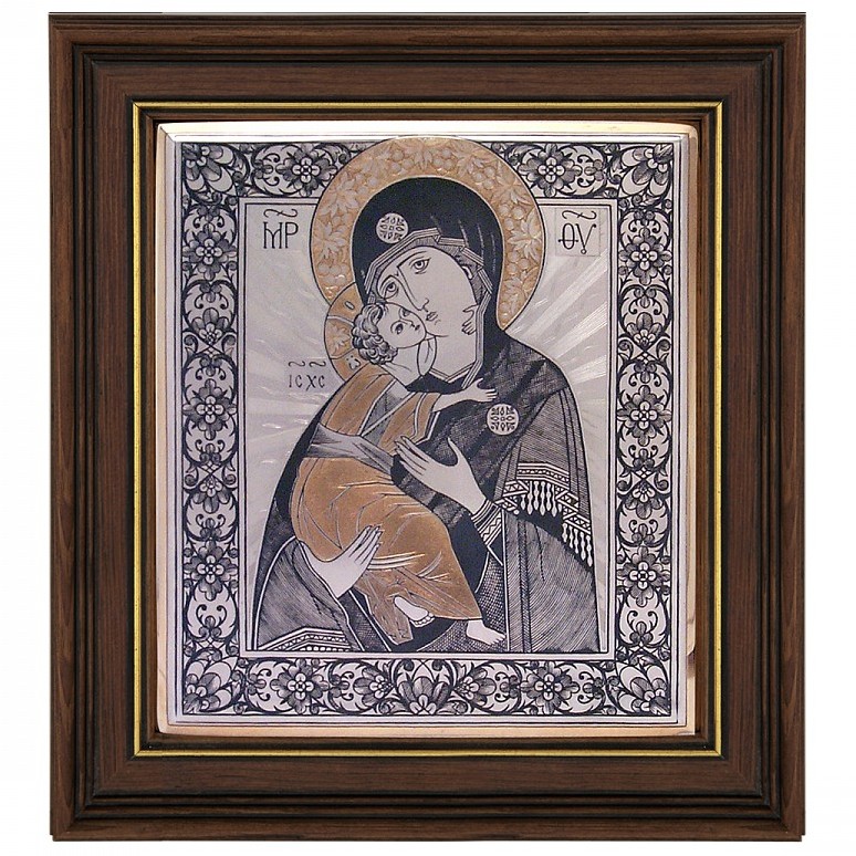 Владимирская икона Божией Матери настольная, финифтьВладимирская икона Божией Матери настольная, финифтьФинифть – древнейшее искусство миниатюрной живописи. Процесс изготовления невероятно сложен. Над созданием каждого изделия трудятся лучшие мастера-живописцы. Роспись по эмали практически вечно сохраняет чистоту, блеск и прозрачность цвета. Изделия ростовской финифти признаны ценителями искусства всего мира. Они хранятся в таких музеях, как Музей народного искусства в Москве, Государственный Исторический музей, Государственный Русский музей.