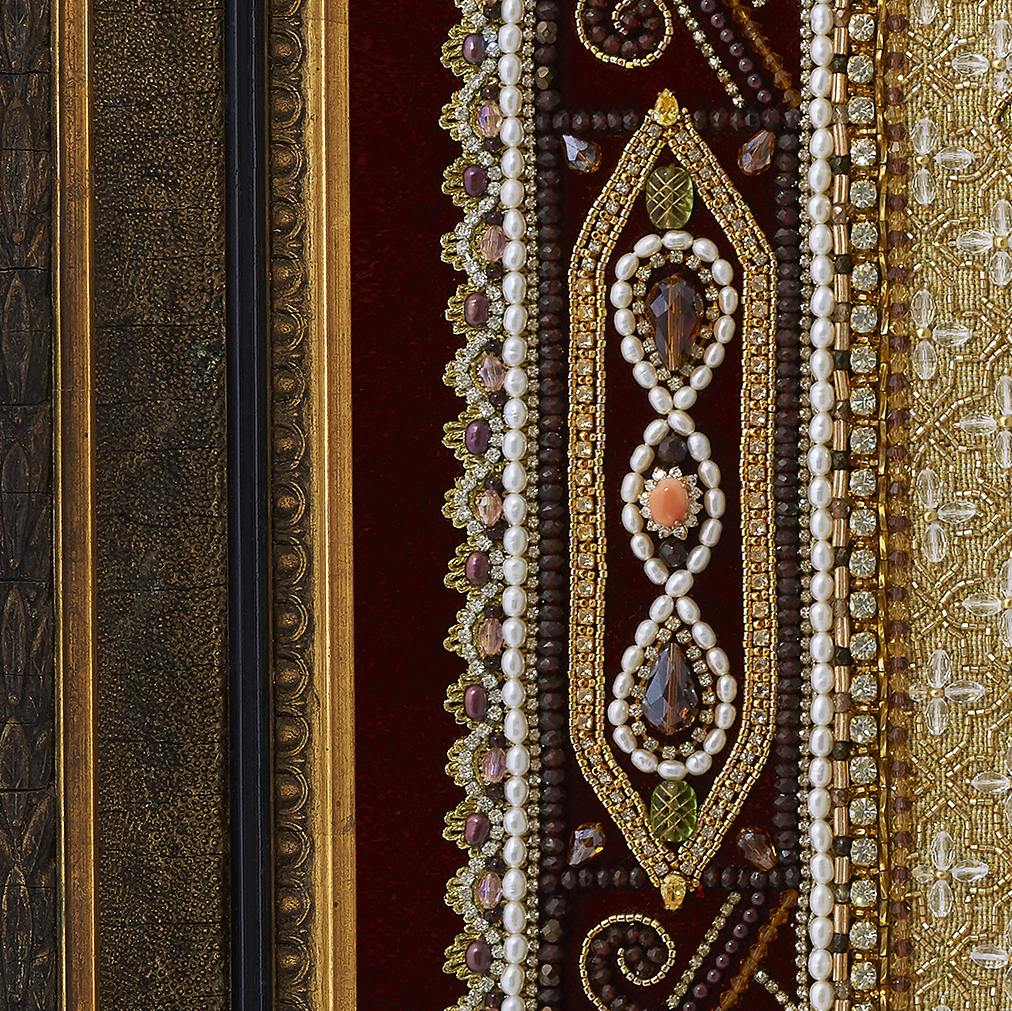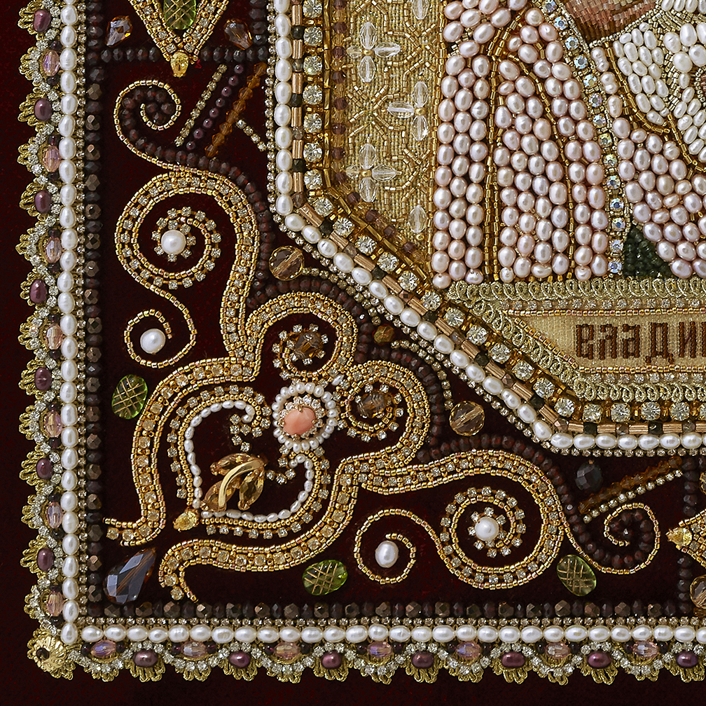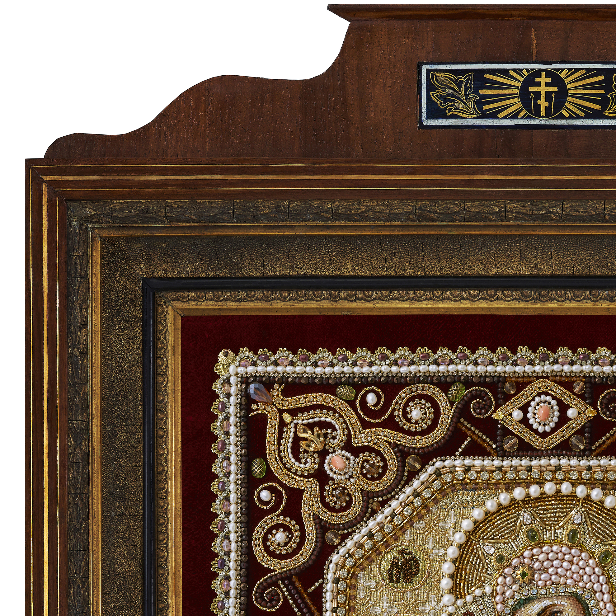 Вышитая икона "Богоматерь Владимирская" в раме и киоте