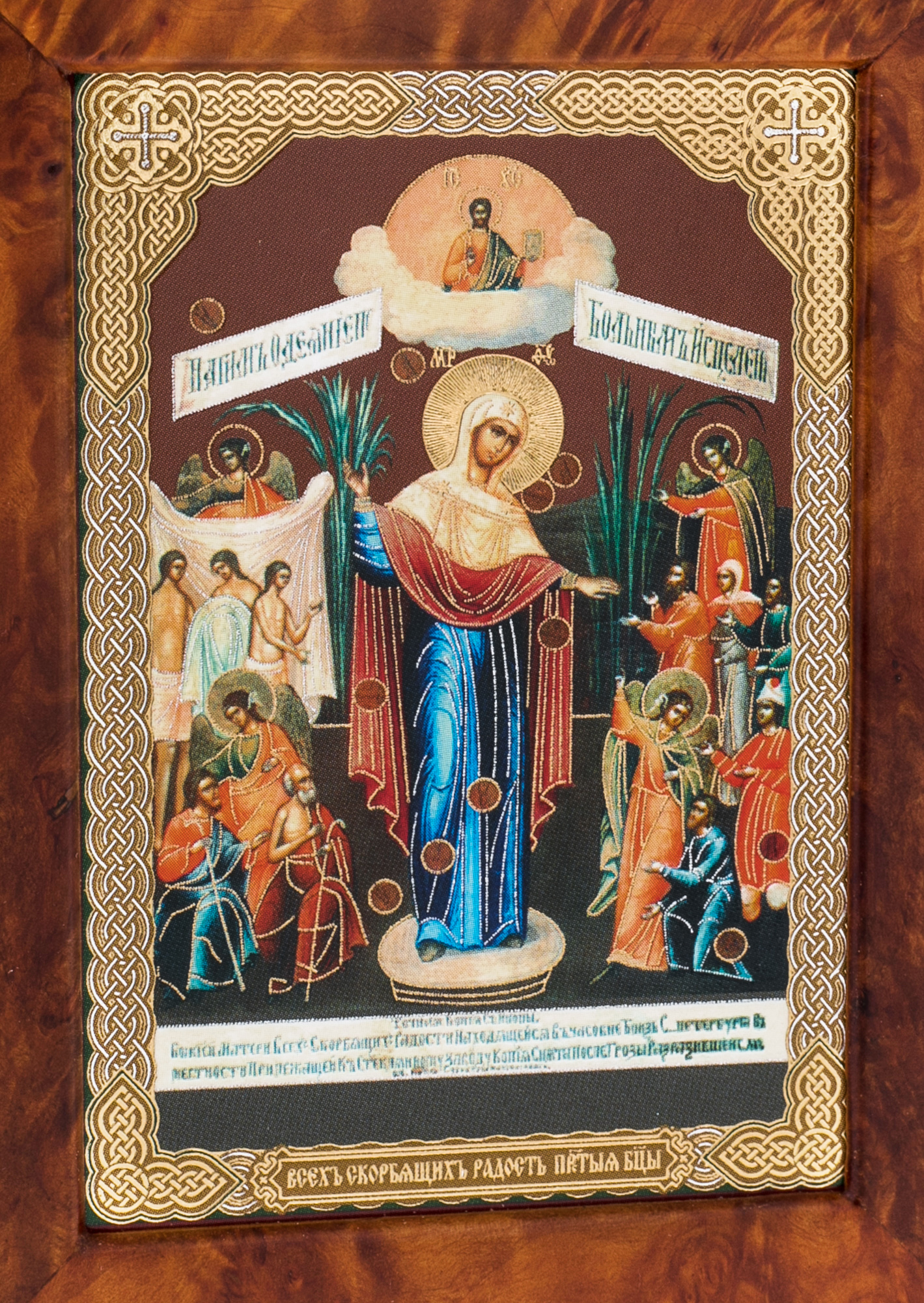 Икона Божьей Матери "Всех скорбящих радость" из капа березы