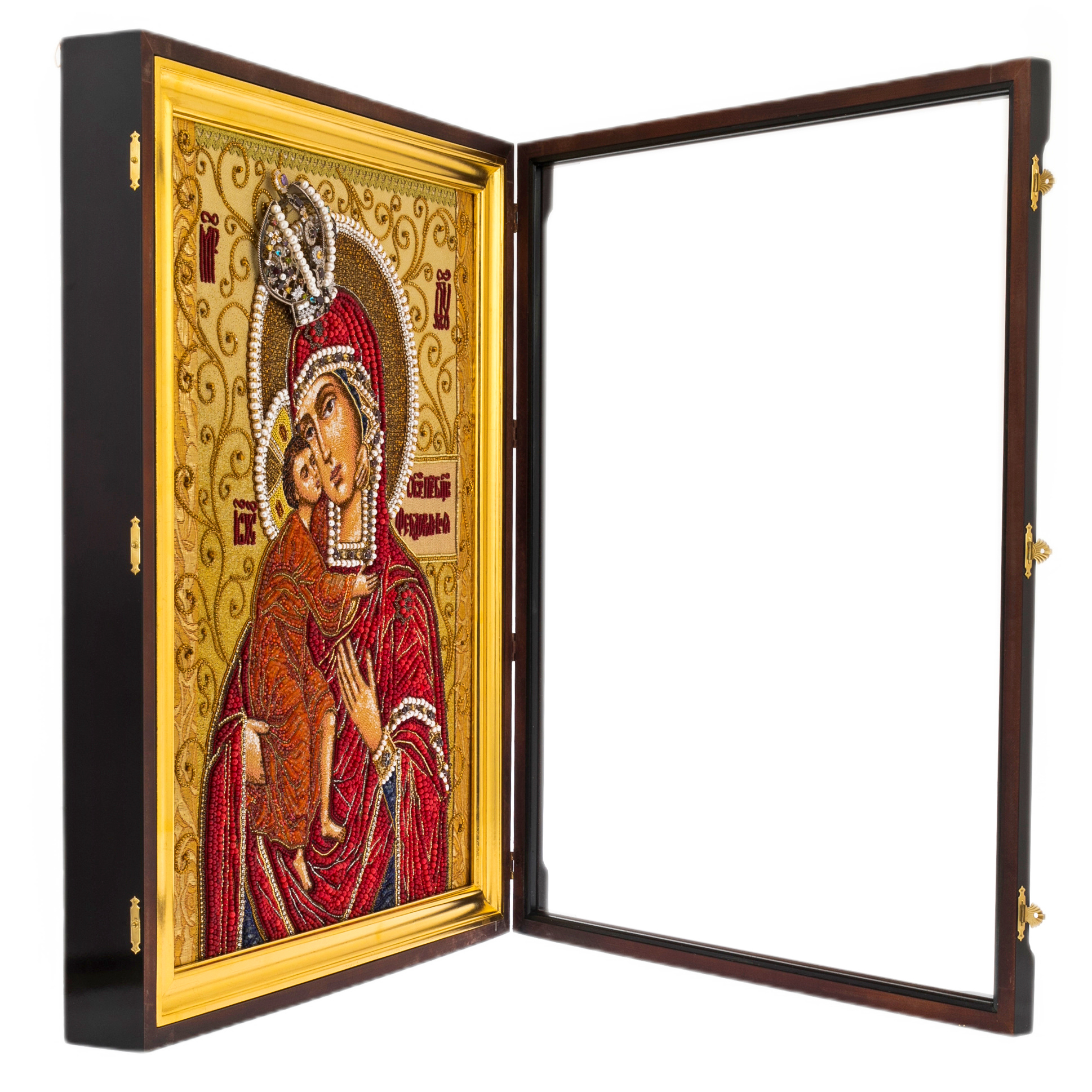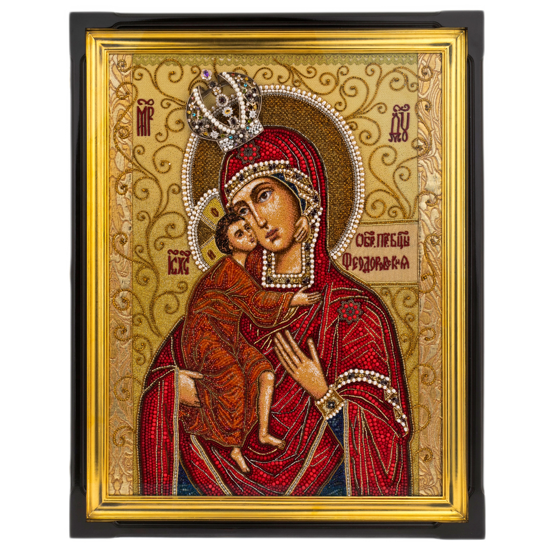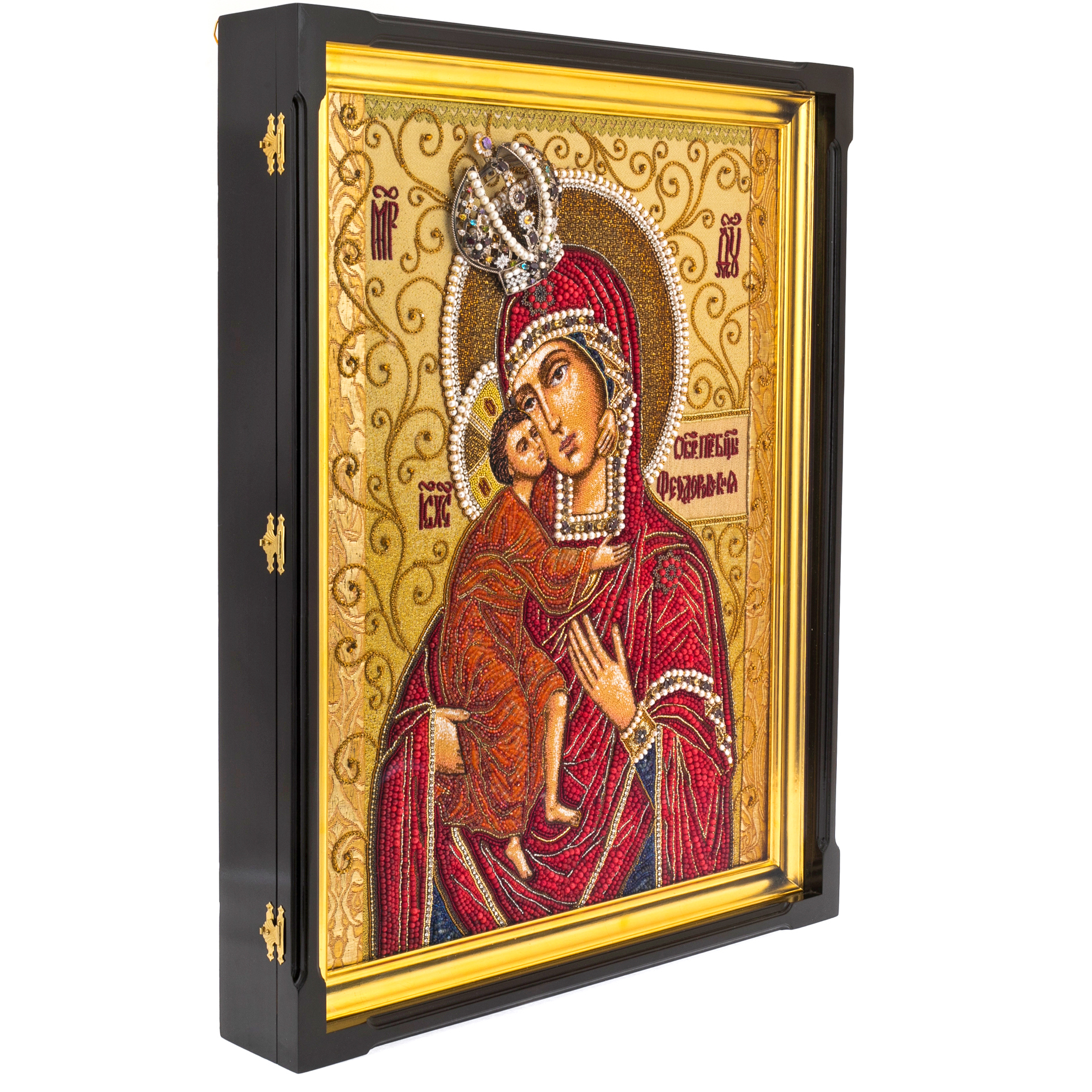 Вышитая икона "Богоматерь Феодоровская" в киоте