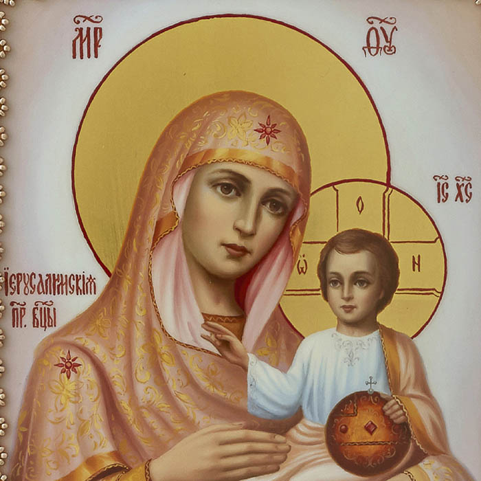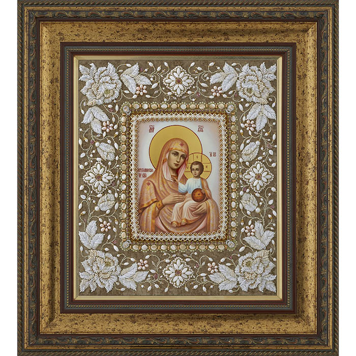 Вышитая икона "Богоматерь Иерусалимская" в раме