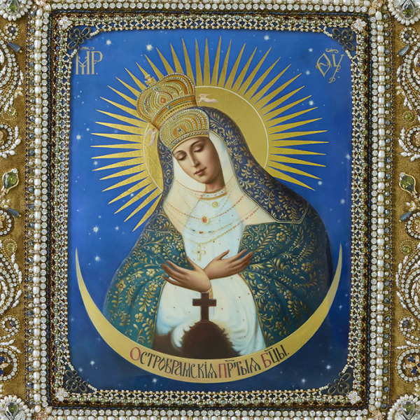 Икона Божией Матери ОстробрамскаяИкона Божией Матери ОстробрамскаяИкона Божией Матери Остробрамская — необычный образ Пресвятой Богородицы, который имеет большое значение и для католиков. На иконе Божией Матери «Остробрамская» у Девы Марии опущен взгляд и скрещены руки. Кроме нимба на голове у Богородицы — корона, от Нее исходит сияние со звездами в ночном небе. Это — один из самых редких типов иконографического изображения Пресвятой Богородицы, на нем нет Младенца Иисуса.